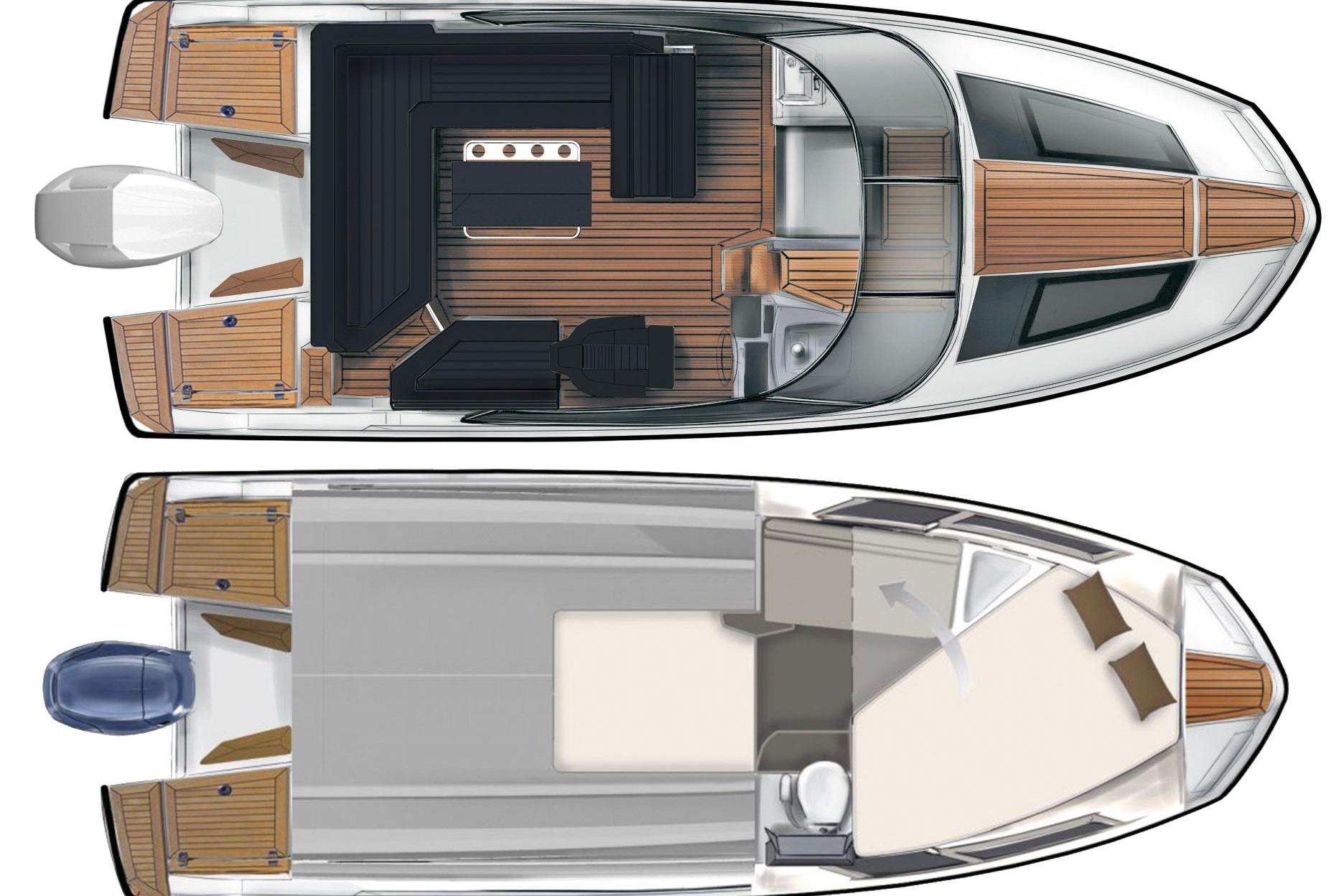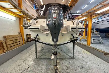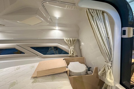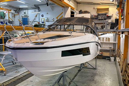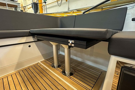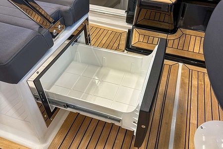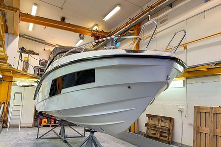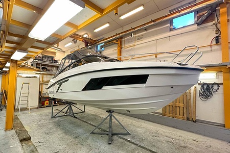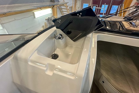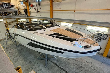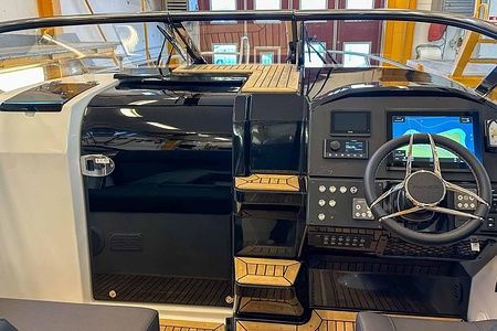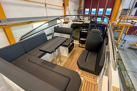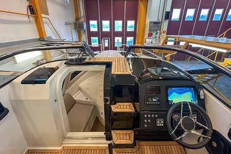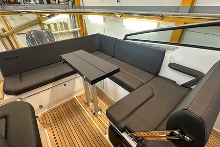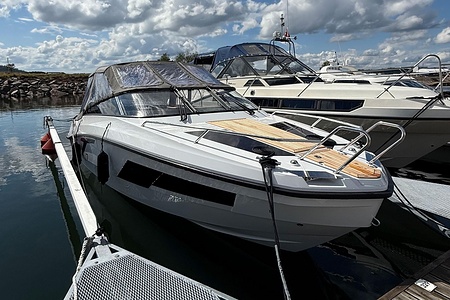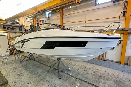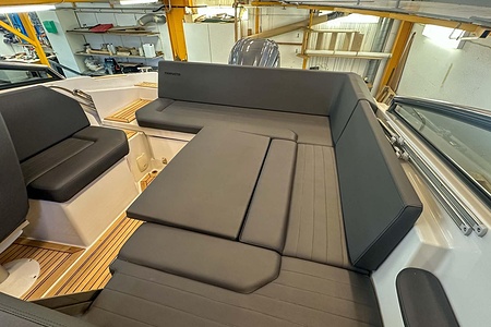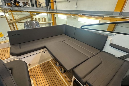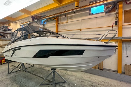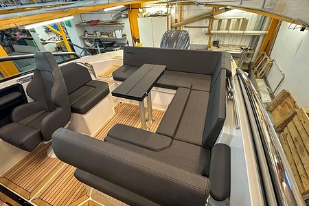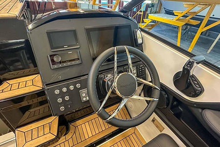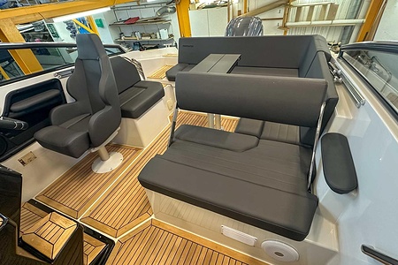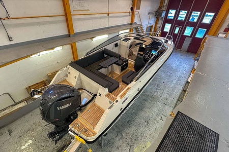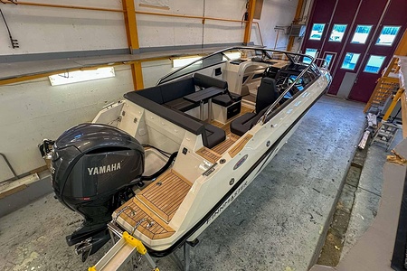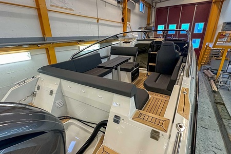 A modern, sporty, and well-equipped daycruiser with all the right features! This Finnmaster T7 combines sleek Nordic design with smart details for comfortable boating. Equipped with a Yamaha F225 XCB (225 hp), the boat reaches a top speed of over 40 knots, making it perfect for both fast rides and relaxed family trips.
