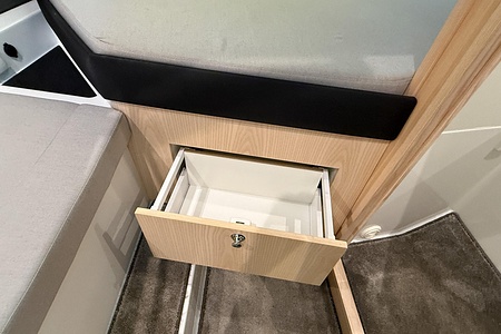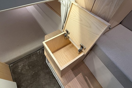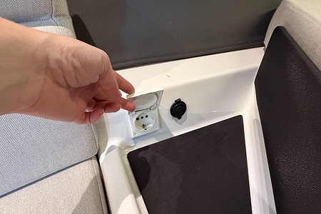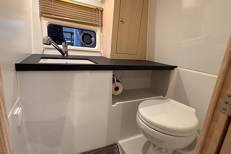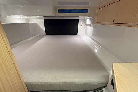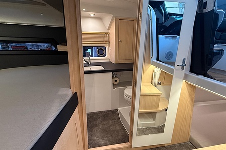 The Finnmaster T9 offers generous social areas both outside and below deck. The large aft U-sofa creates the perfect gathering space, while the smart canopy solution allows you to easily adapt the boat to changing weather conditions. Below deck, you will find a bright and spacious cabin with comfortable sleeping accommodation for up to four people, as well as a separate toilet compartment – ideal for weekend getaways.