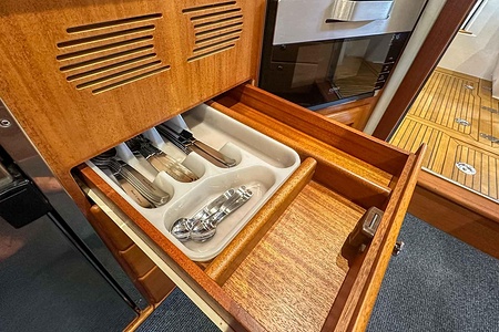 This model is internationally recognized and was awarded “Best Flybridge Boat up to 50 ft” by Motor Boat & Yachting in both 2007 and 2008 – a distinction that highlights its well-thought-out design, solid construction, and outstanding seaworthiness.