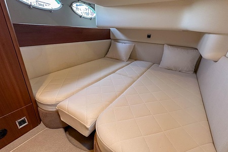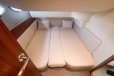Onboard, you are welcomed by a well-planned and spacious layout featuring two generous cabins, two bathrooms, and a convertible saloon – perfect for both family and guests. There is plenty of space for comfortable and extended stays at sea.