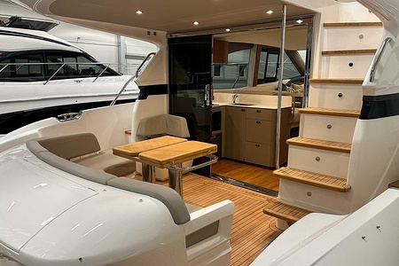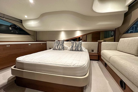 The Princess F45 is widely praised for its remarkable space, modern hull design, and class-leading flybridge. This 2021 example combines performance, comfort, and elegance in a compact luxury yacht that feels significantly larger than its length suggests.
