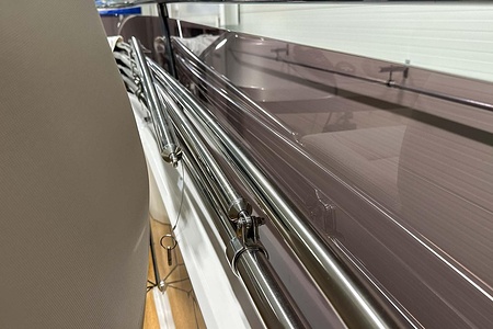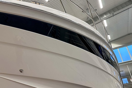 Flybridge helm consol sprayed in Oyster grey