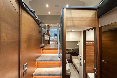 Walnut interior wood satin finish (aft saloon and galley floor is in walnut as standard)