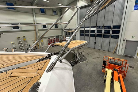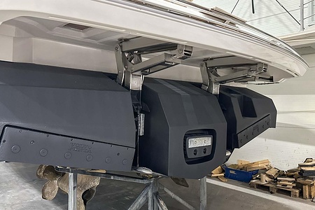 Twin Volvo penta IPS 650 (2 x 480 mhp) are fitted as standard and include dual station joystick controls and ACP (anti corrosion protection) system