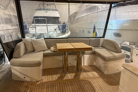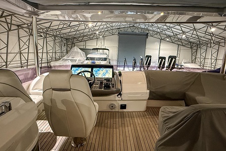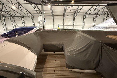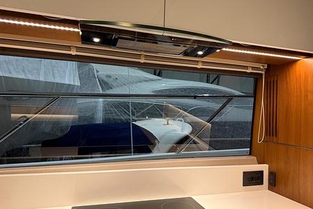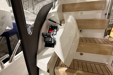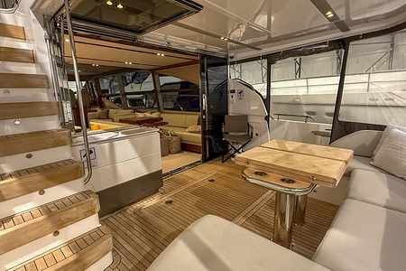 - GRP Flybridge hardtop featuring electric opening section in soft fabric (including dimmable lighting)