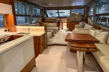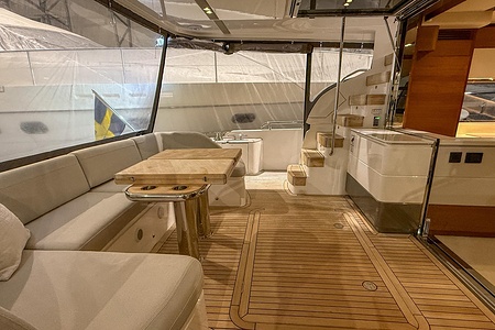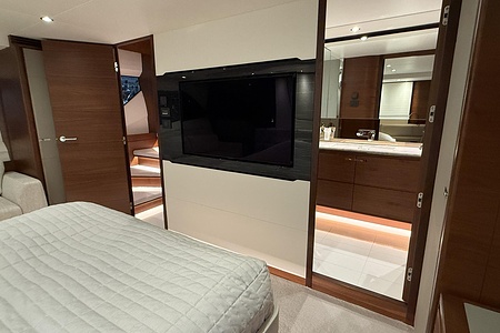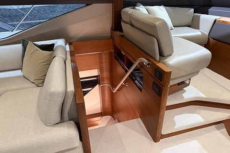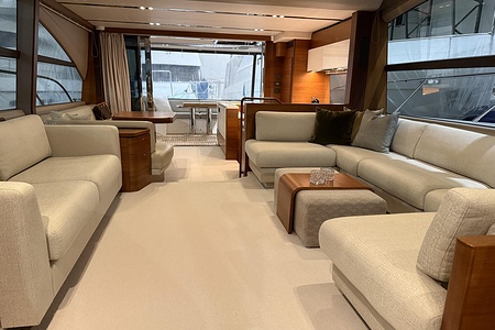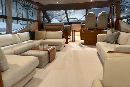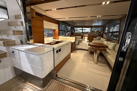 The interior is finished in elegant satin-finished walnut, creating a warm and contemporary feel throughout. Combined with Princess’ renowned craftsmanship and intelligent layout, this yacht offers generous living spaces, luxurious cabins, and superb social areas both inside and out.