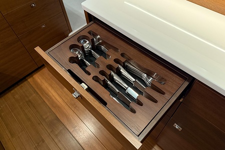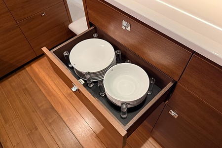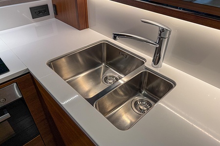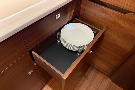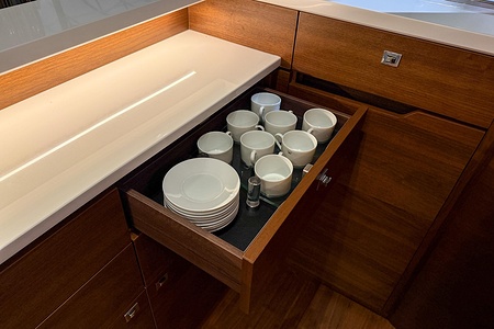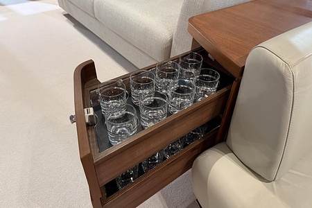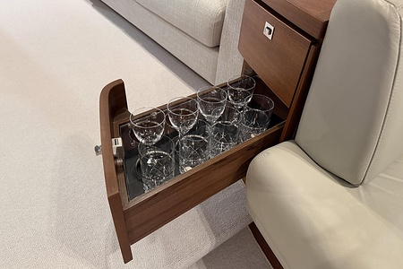 - Additional drinks refrigerator fitted in aft galley counter (50l drawer type)