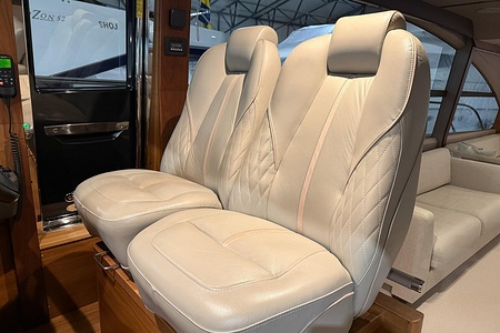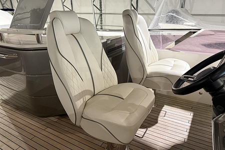 – Quilting detail with contrast piping and panelling to flybridge helm seats