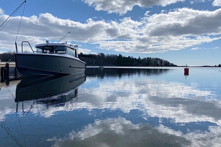 This XO 26 Cabin, also known as the EXPLR 9, is a no-compromise quality boat for those who want to combine comfort, performance, and confident seakeeping. With its robust aluminium hull and deep-V design, it delivers outstanding handling at sea – running smoothly, stably, and safely even in tougher conditions. Built for Nordic waters, the hull inspires solid confidence at all speeds.