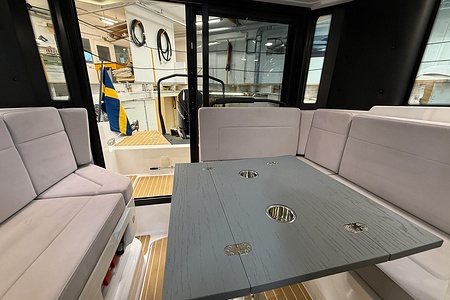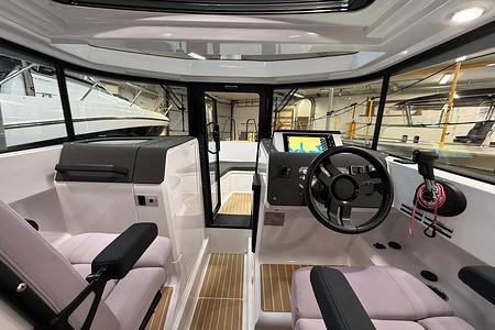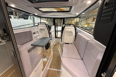 The layout is smart and well thought out, featuring a bright and protected cabin, comfortable seating, and practical solutions that make the boat ideal for both day trips and weekend getaways. On board, you stay safe and comfortable in all weather conditions, with a design that truly maximizes space.