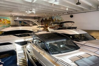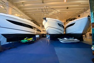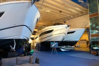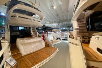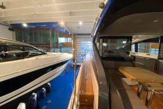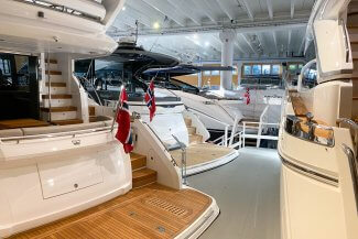 In our 1200m2 exhibition hall you can see Princess V50, V55, F50 and F62. In addition, a selection of used boats in our sales marina.