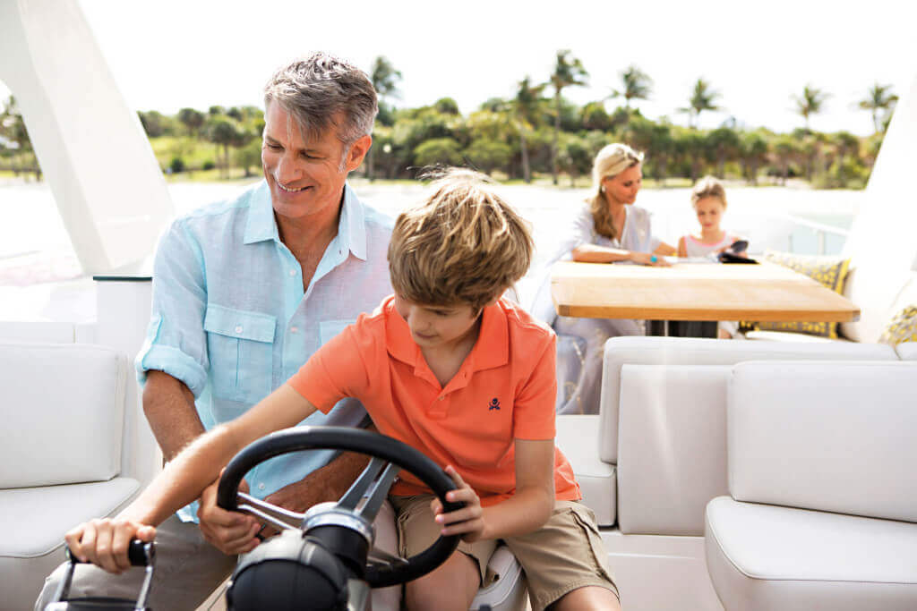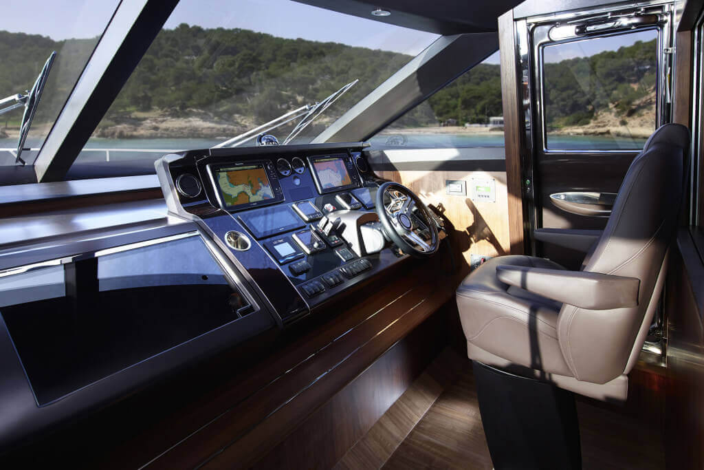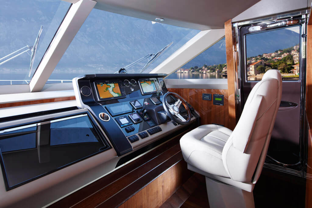 • Helm position with powered raise/lower console, repeat navigation equipment including radar/ chartplotter and engine instrumentation