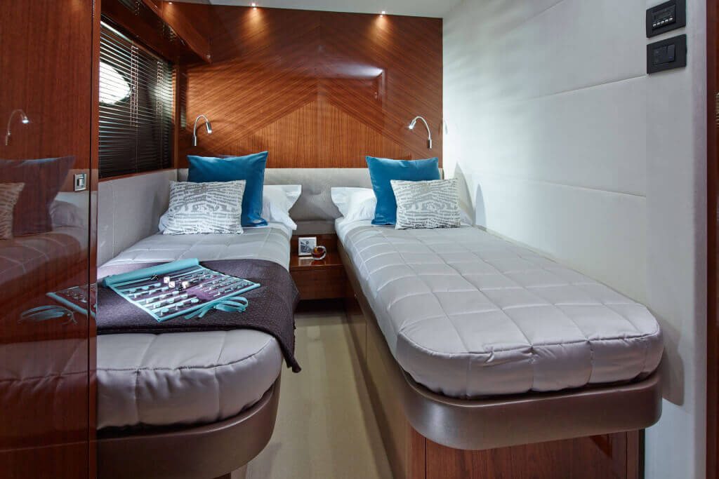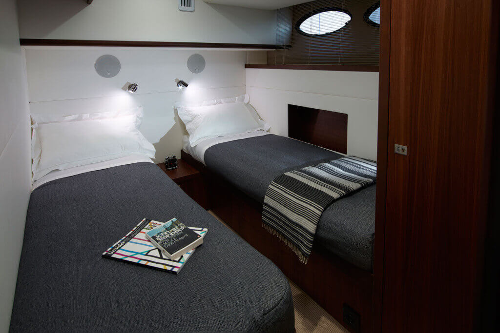 • Crew cabin with two single berths, wardrobe and storage lockers