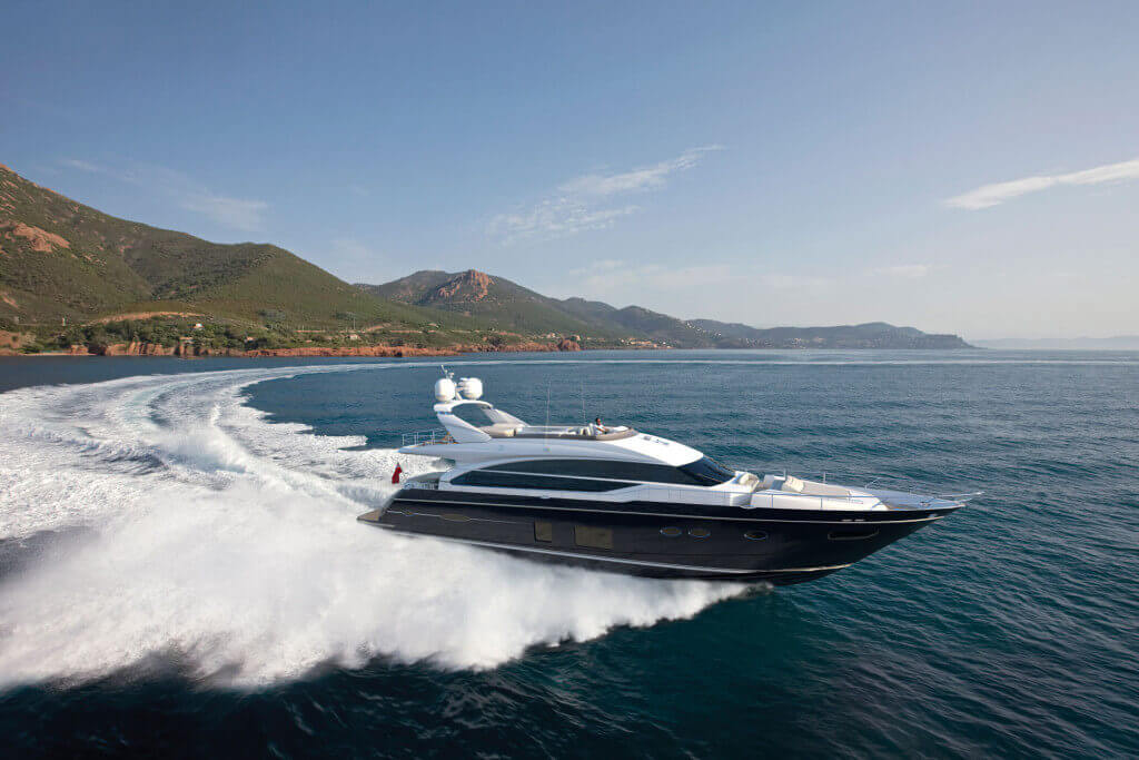 † Maximum speeds will vary depending on cleanliness of hull, condition of sterngear, loading of craft, water and air temperatures, sea conditions and other factors. Speed estimates are therefore given in good faith but without warranty or liability on the part of us or Princess Yachts International plc.
