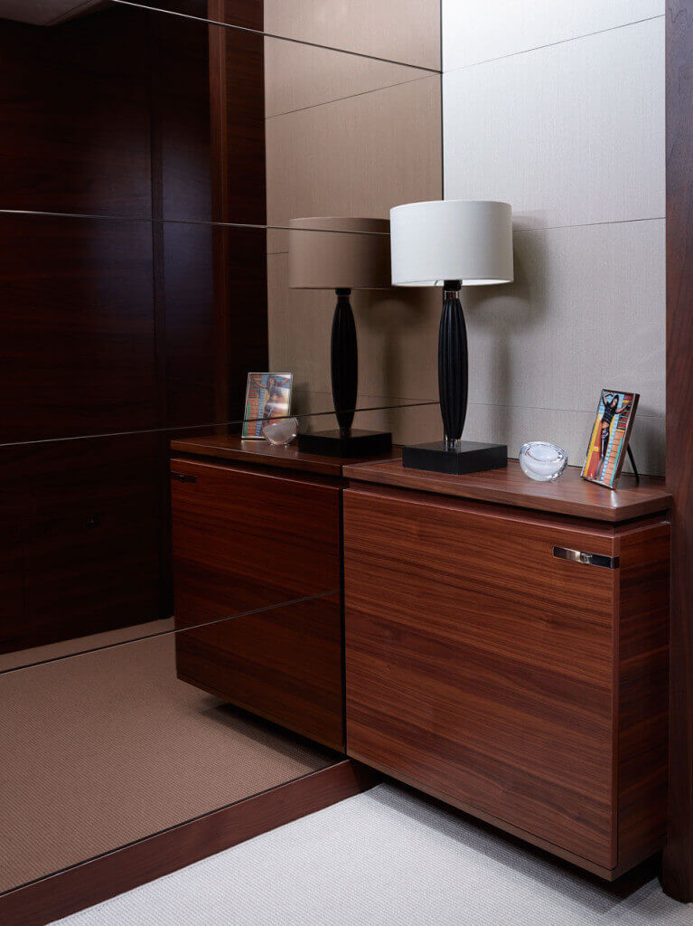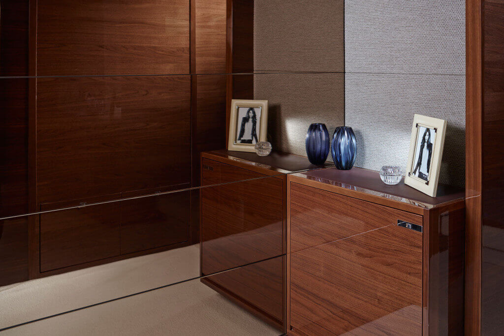 • Furniture in Rovere Oak with satin or high gloss finish. American Walnut or Alba Oak available as an option.