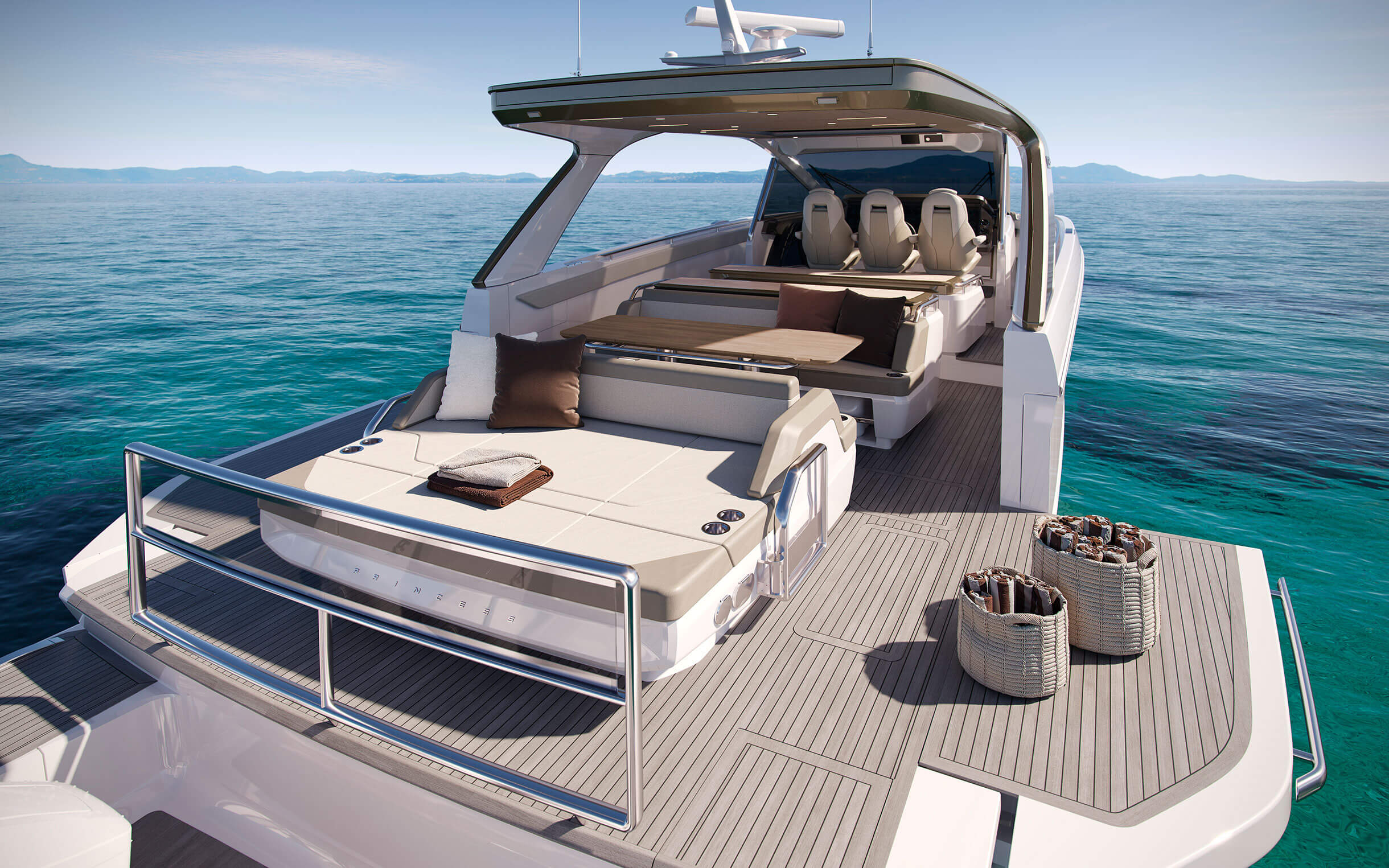 The all-new C48 Open introduces a fresh chapter in the Princess story as the first model ever offered with outboard propulsion. Her advanced stepped hull, designed by Michael Peters, ensures thrilling performance with speeds of up to 51 knots.