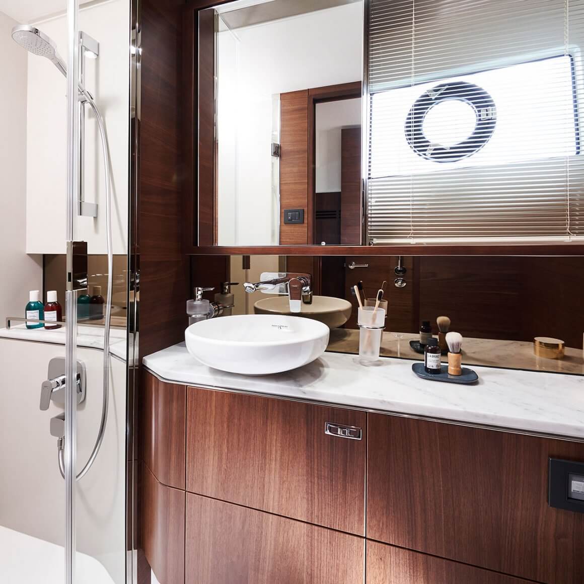 • Window with opening porthole and venetian blind
