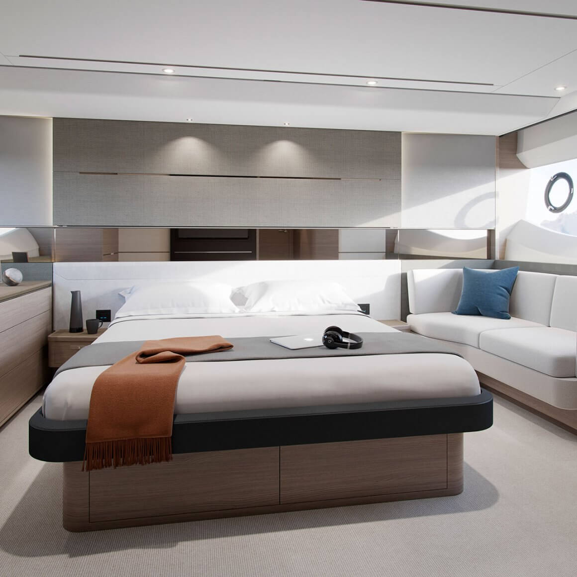 • Garage(to take tender up to 3.3m) with electro-hydraulic door and tender launch system with electric winch