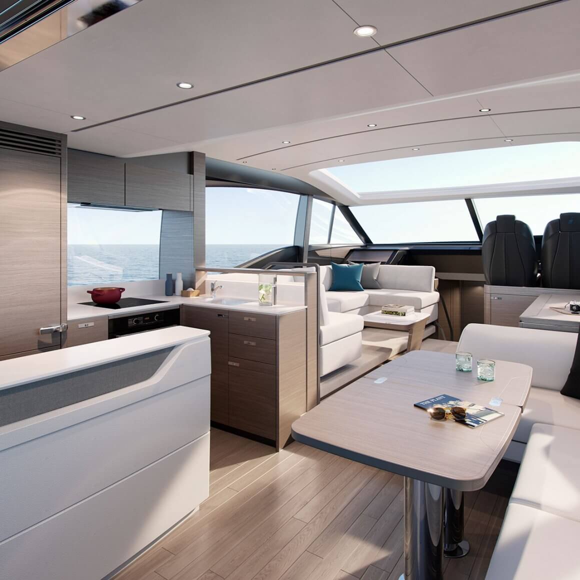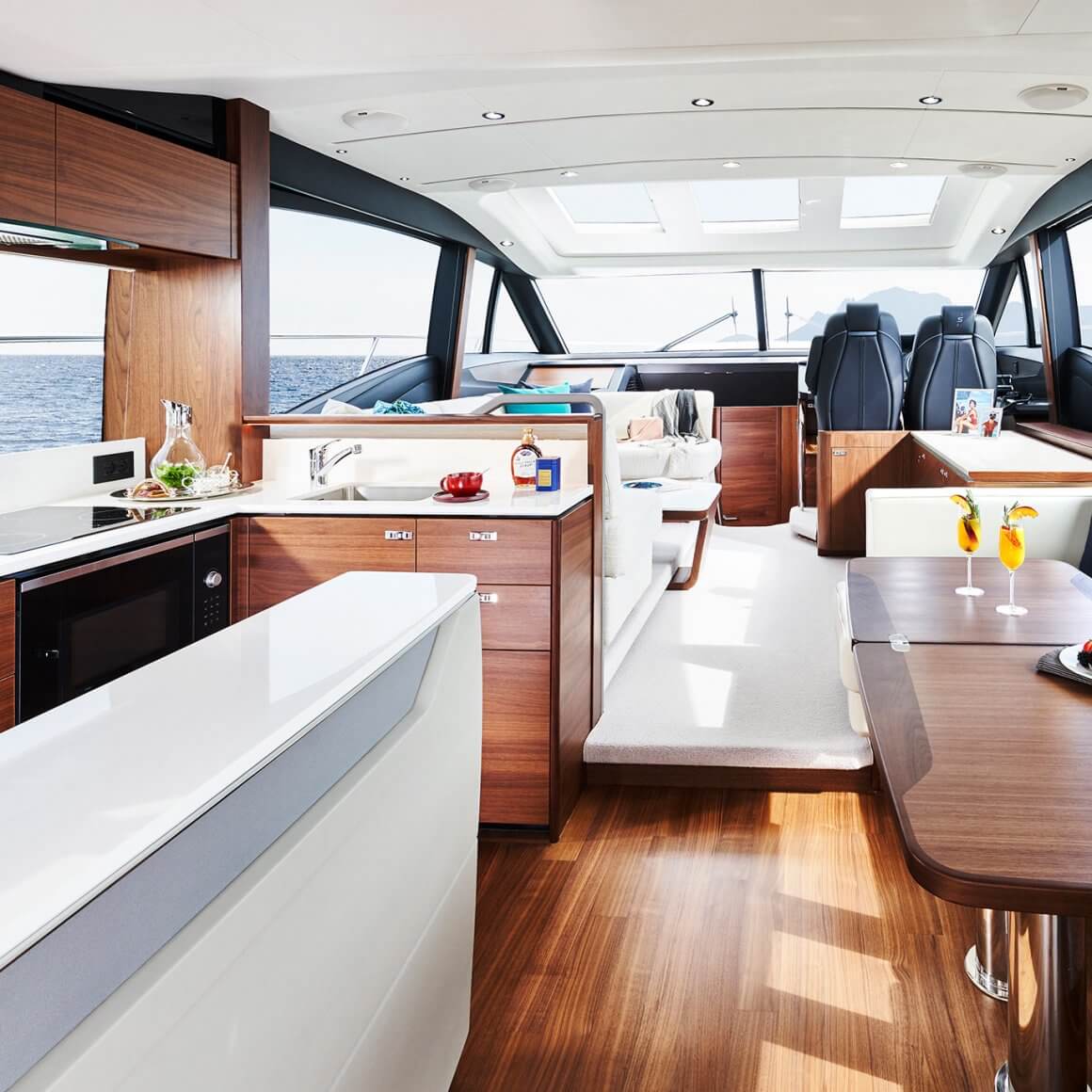• Timber-laid floor to galley and dining area
