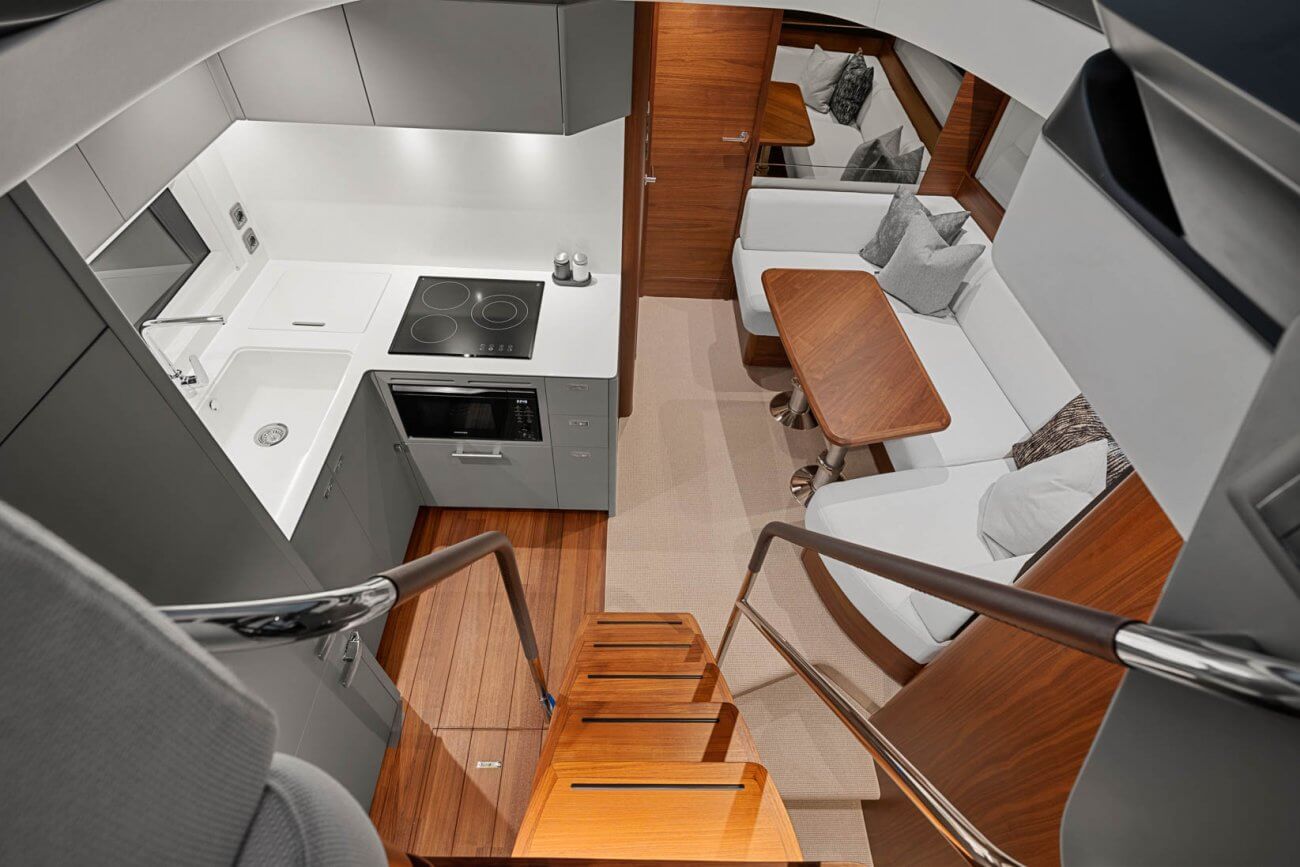 With a deep-V hull, increased fuel capacity, and exceptional performance, the V50 allows thrill seekers to travel further afield. Characterised by sleek exterior styling and extended full-length window graphics, the all-new V50 is instantly recognisable as a member of the V Class. Elevated interior styling consists of flowing shapes and forms, contrasted with textured fabrics.