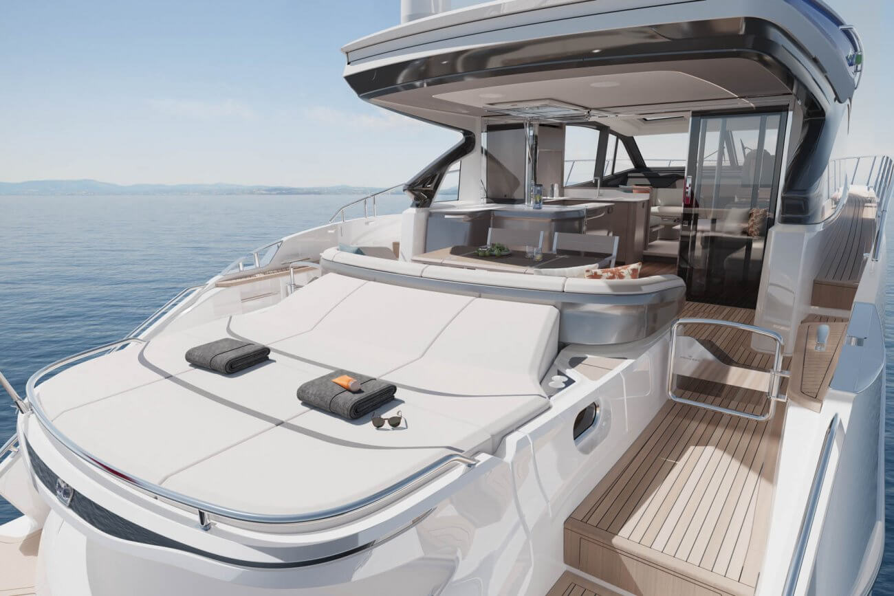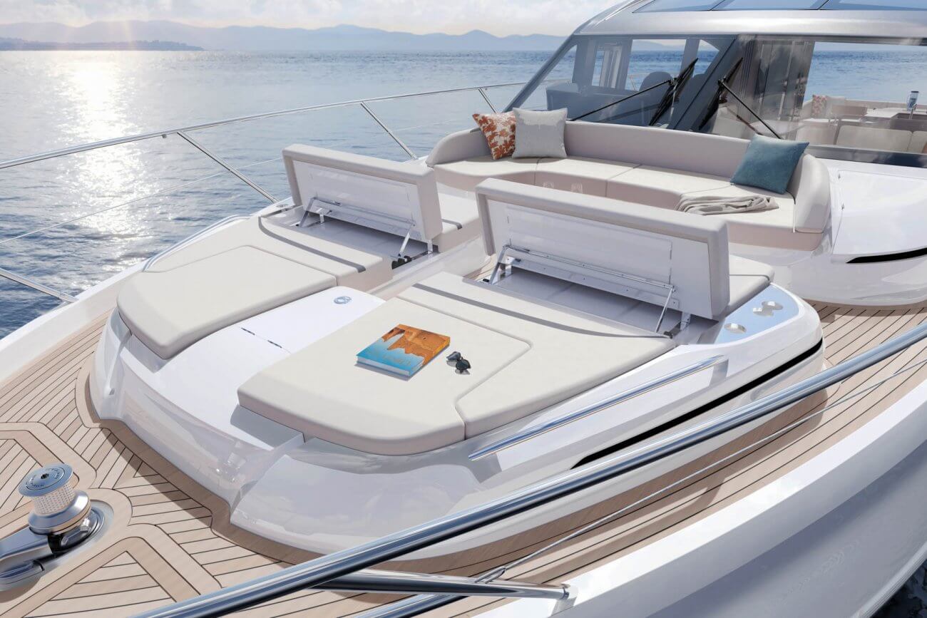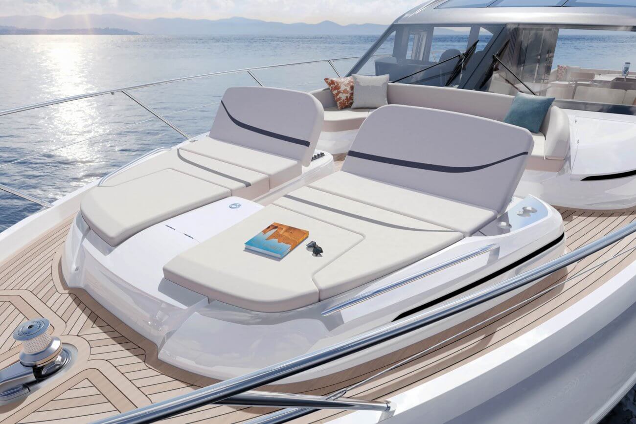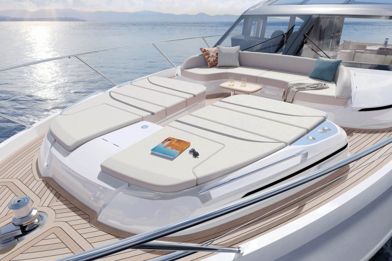 • Foredeck sunbathing area with cushions and integrated adjustable headrests