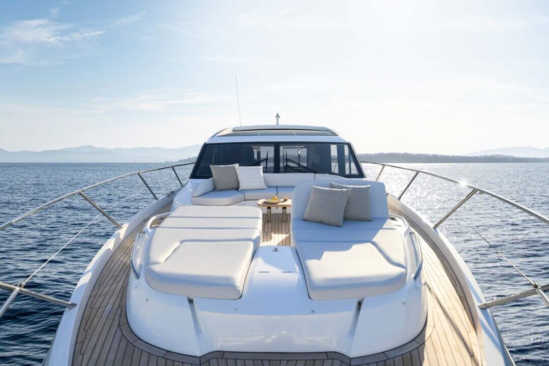 • Foredeck sunbathing area with cushions and integrated adjustable headrests