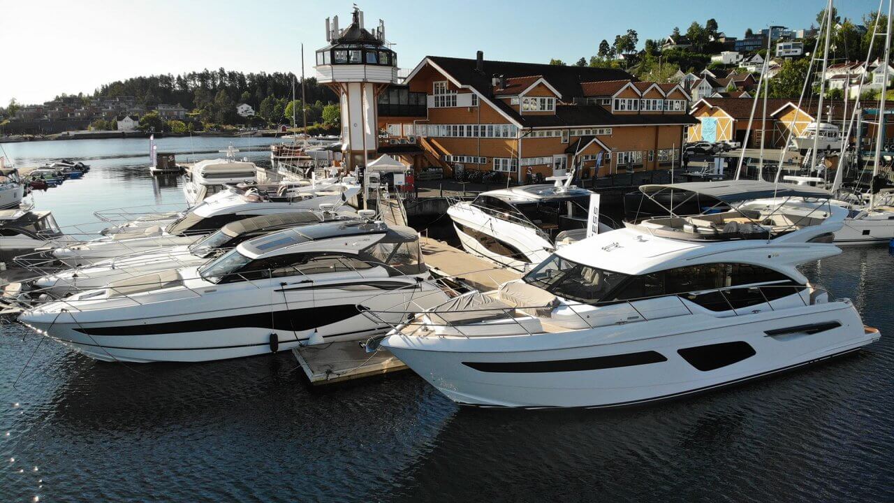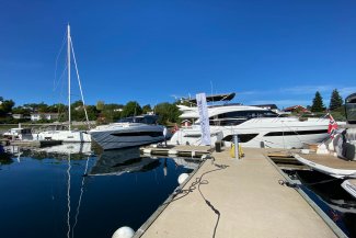 På brygga ligger klar for visning Princess V40, Princess V50 Open og Princess F65 vil vises for første gang i Norge.