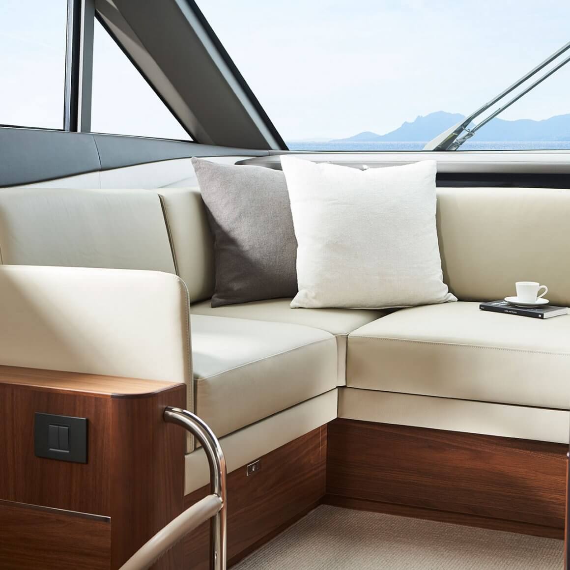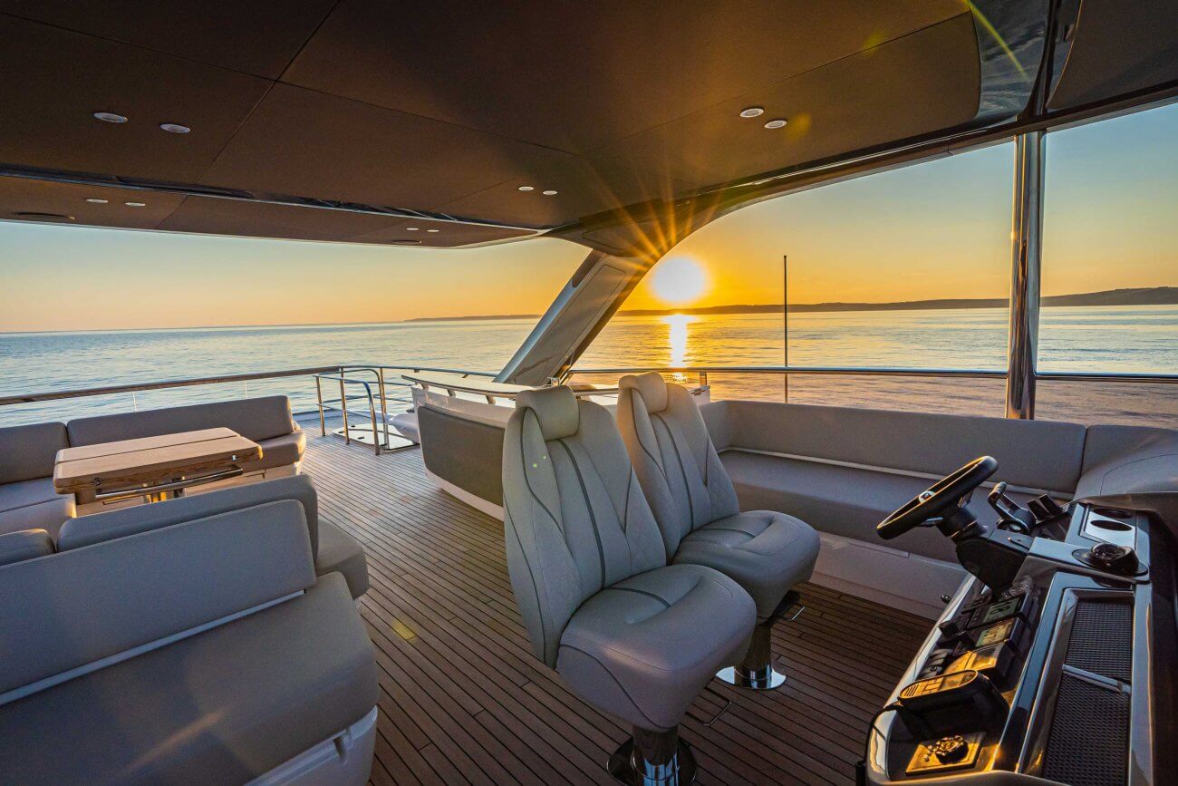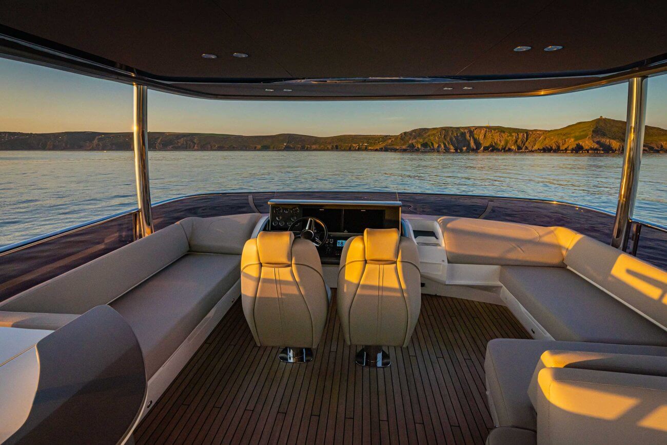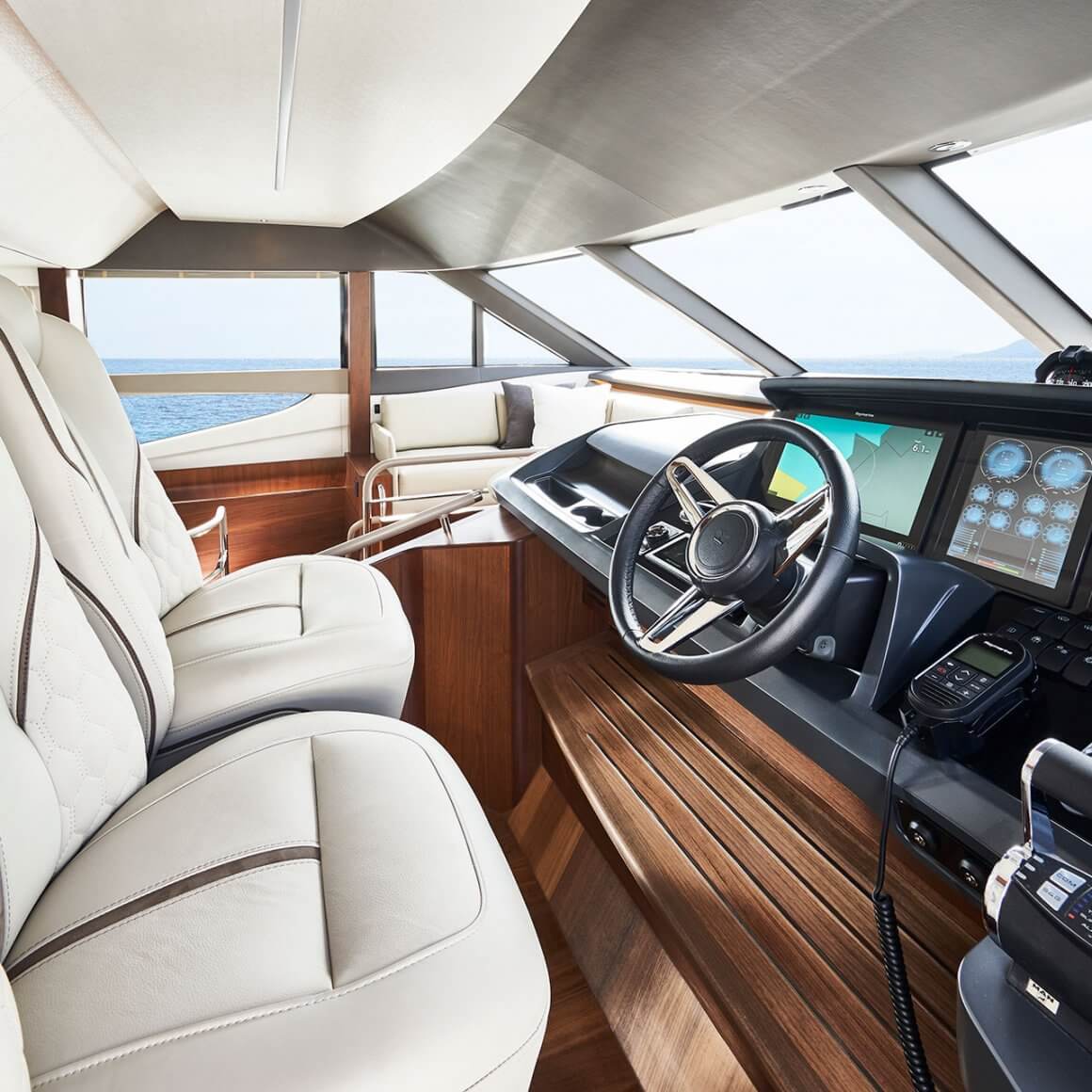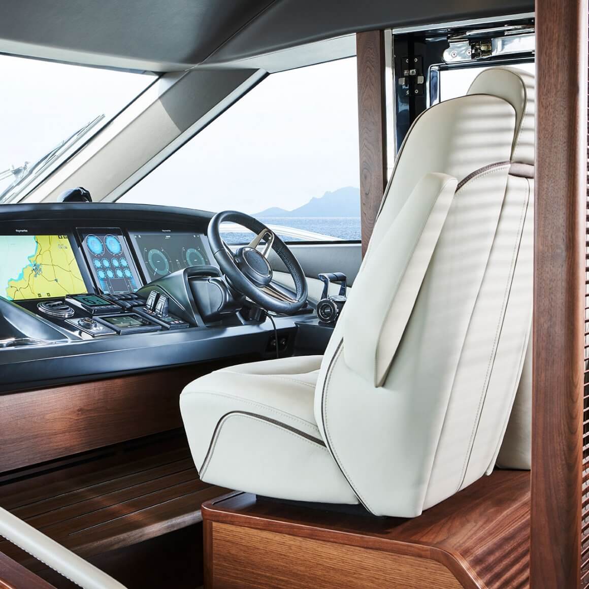 • Twin helm seats with electric fore and aft adjustment for helmsman