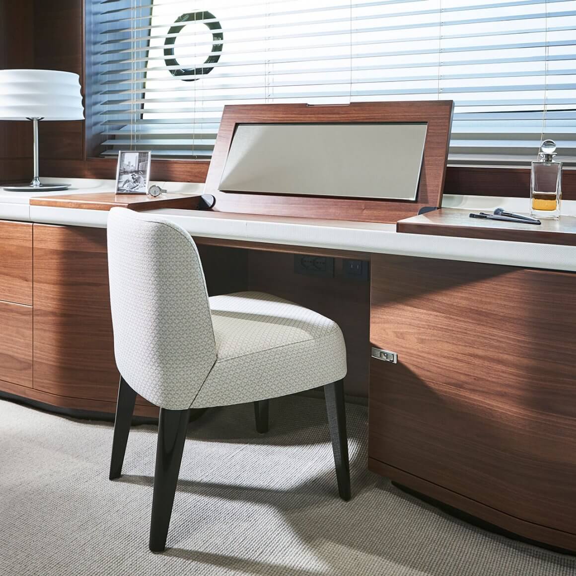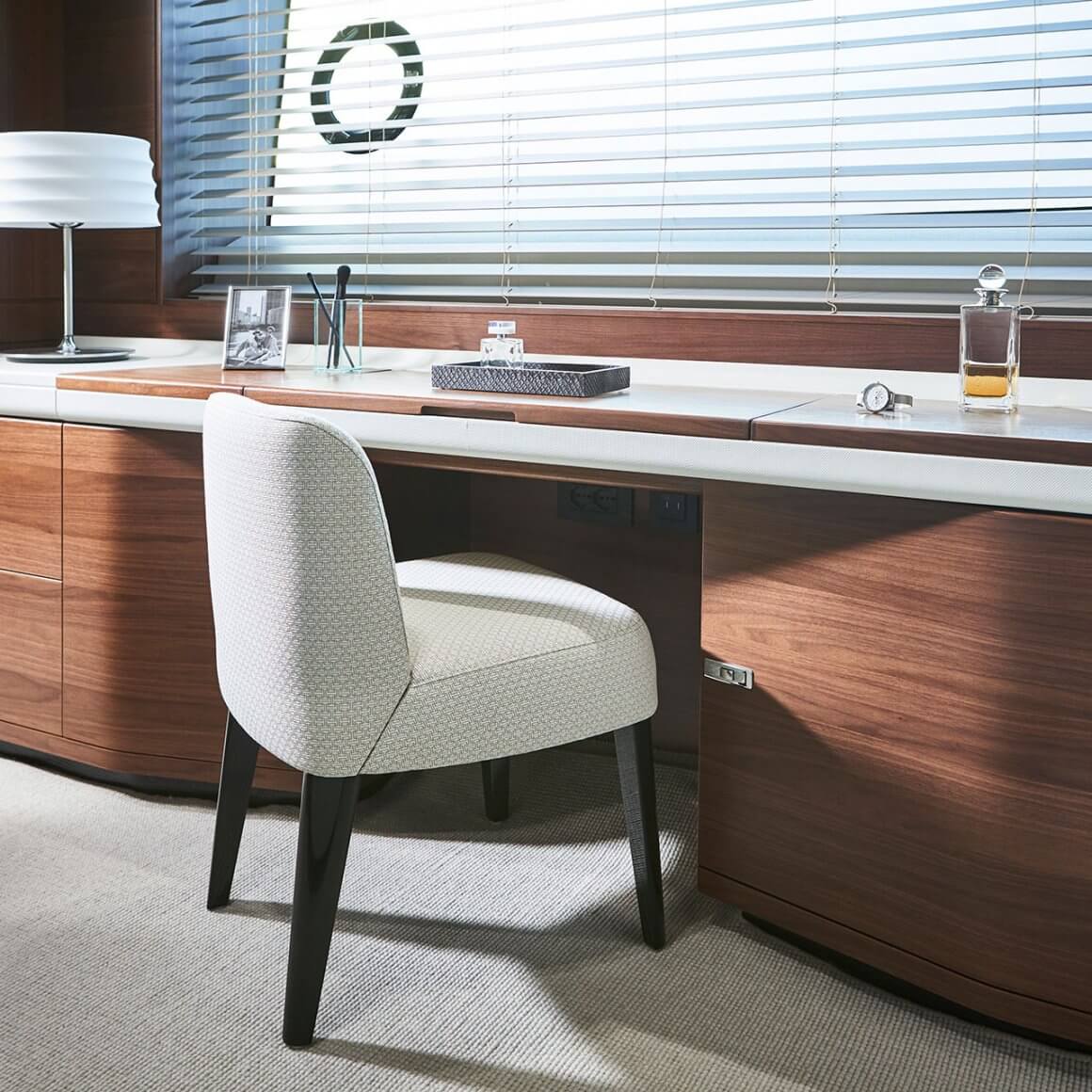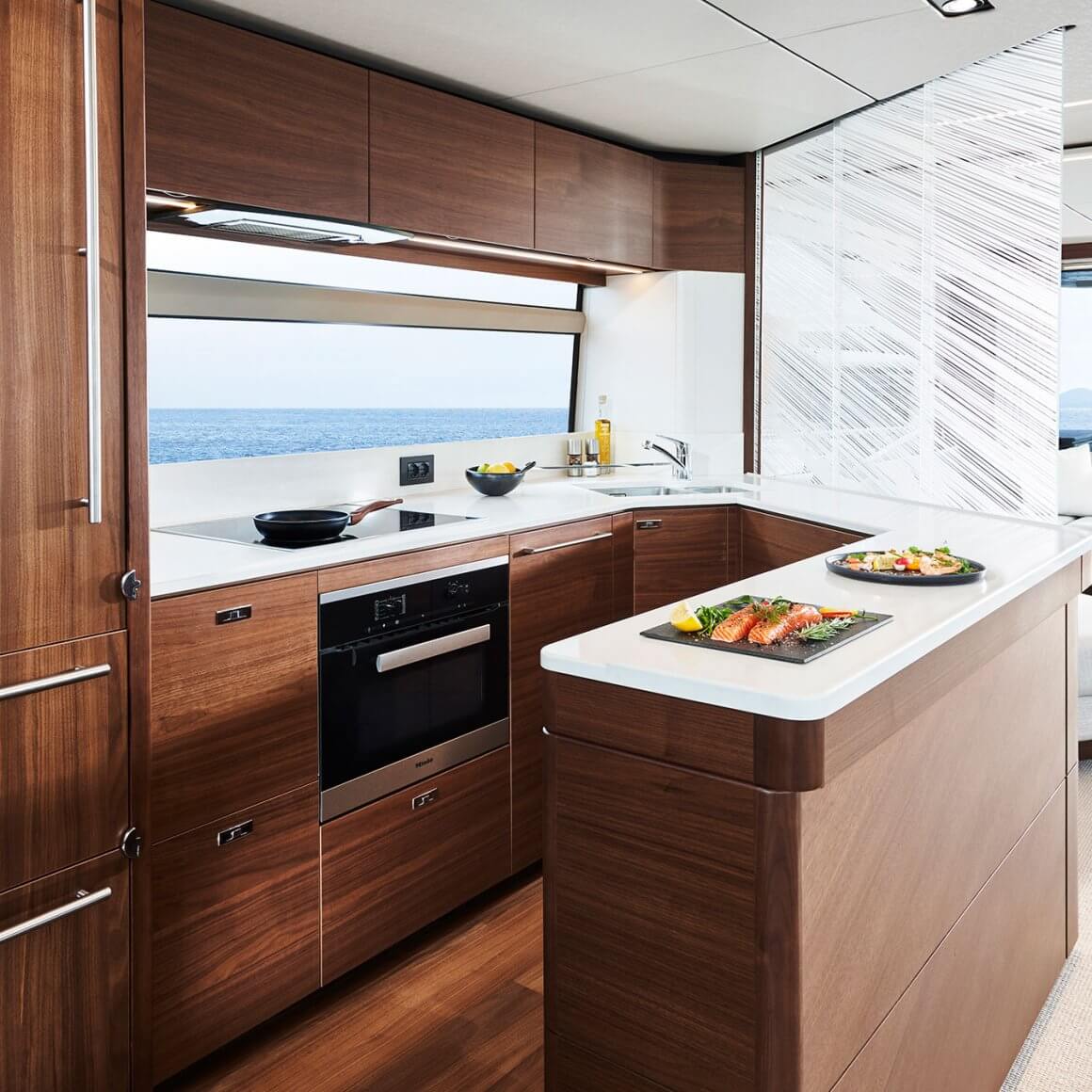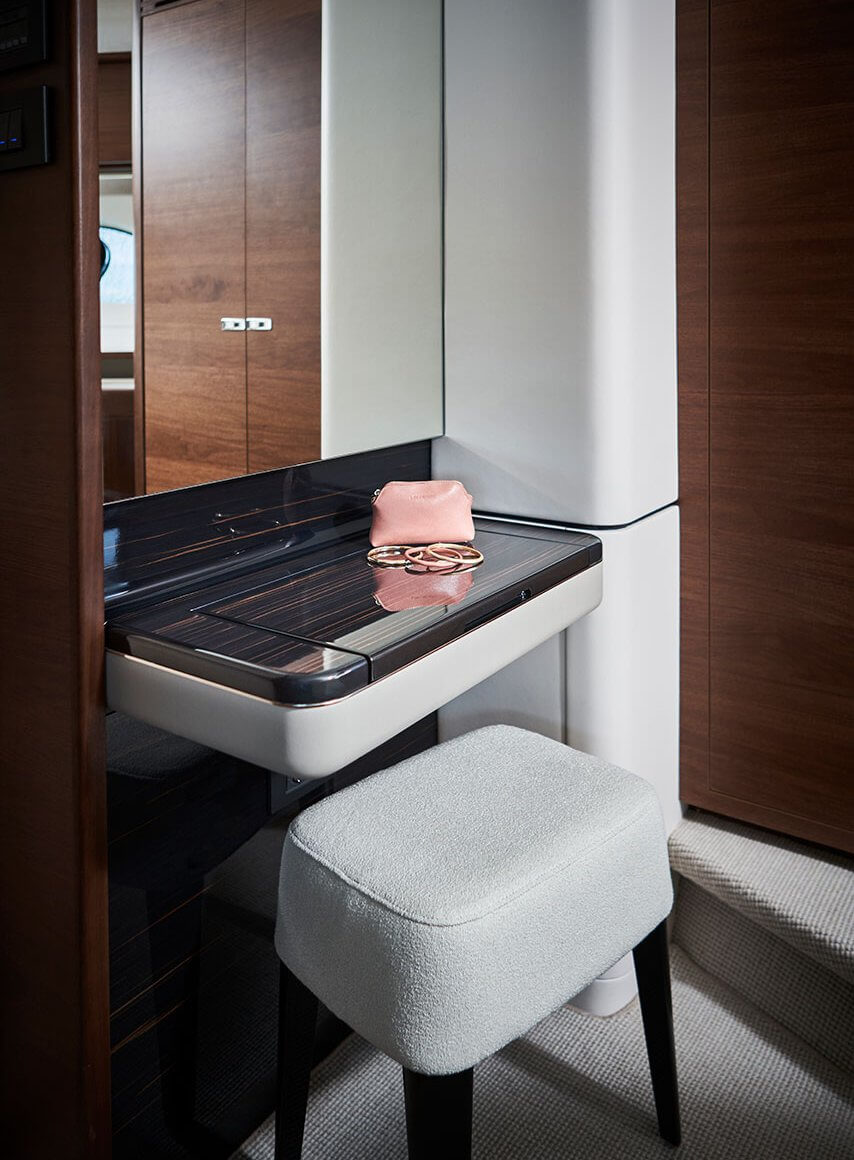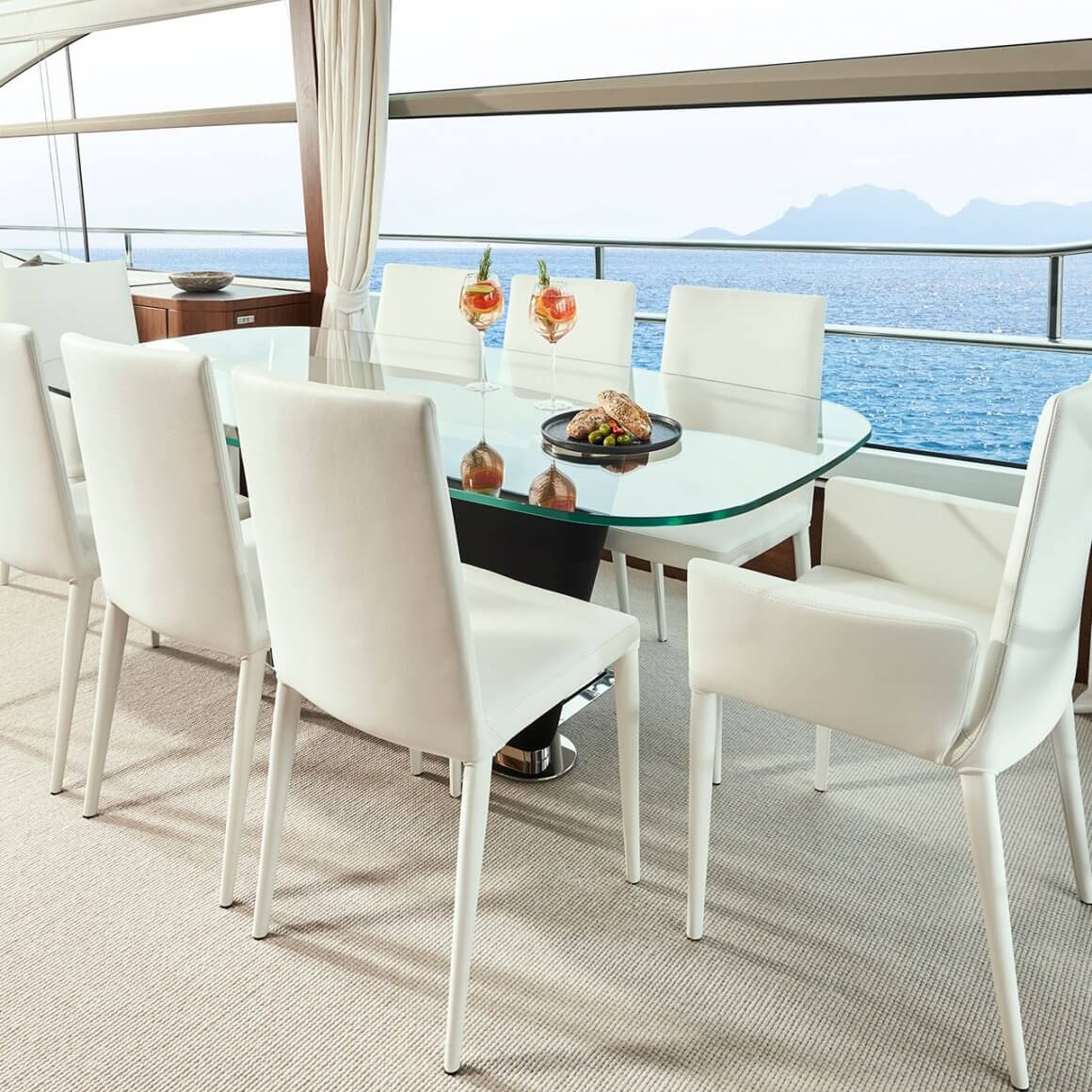 • Twin helm seats with electric fore and aft adjustment for helmsman