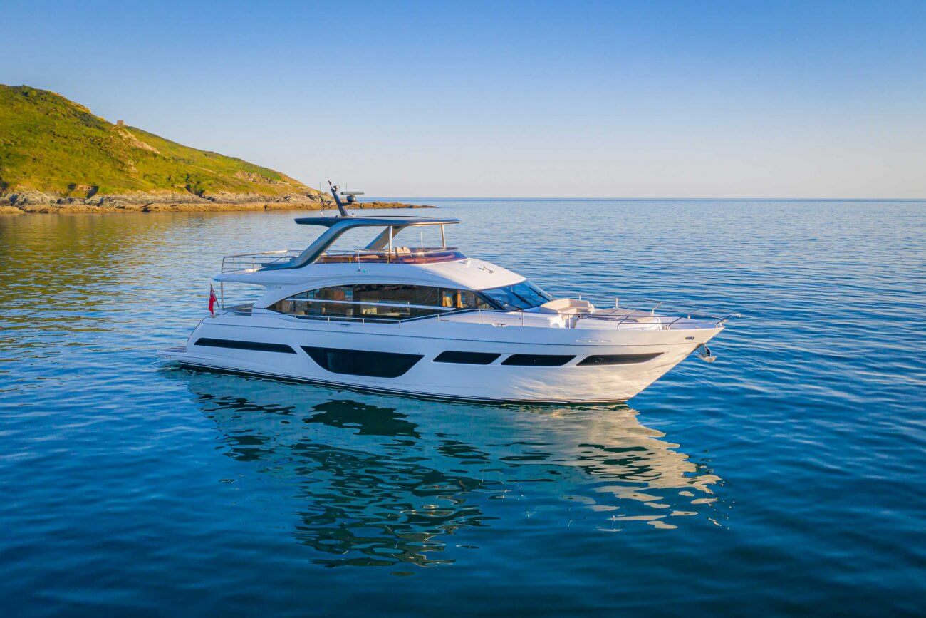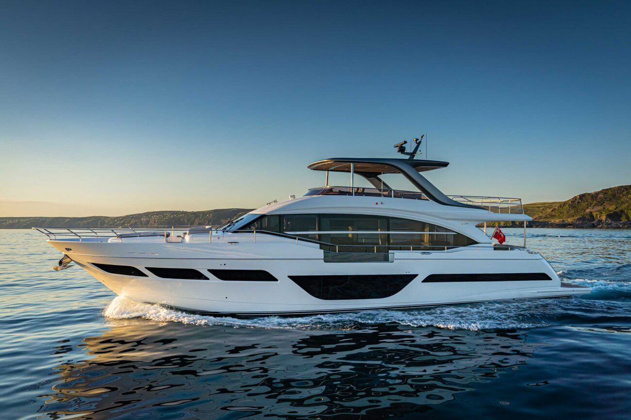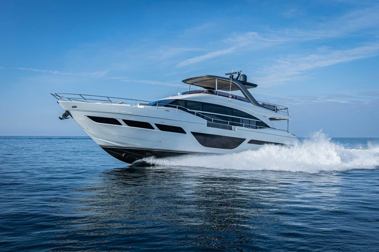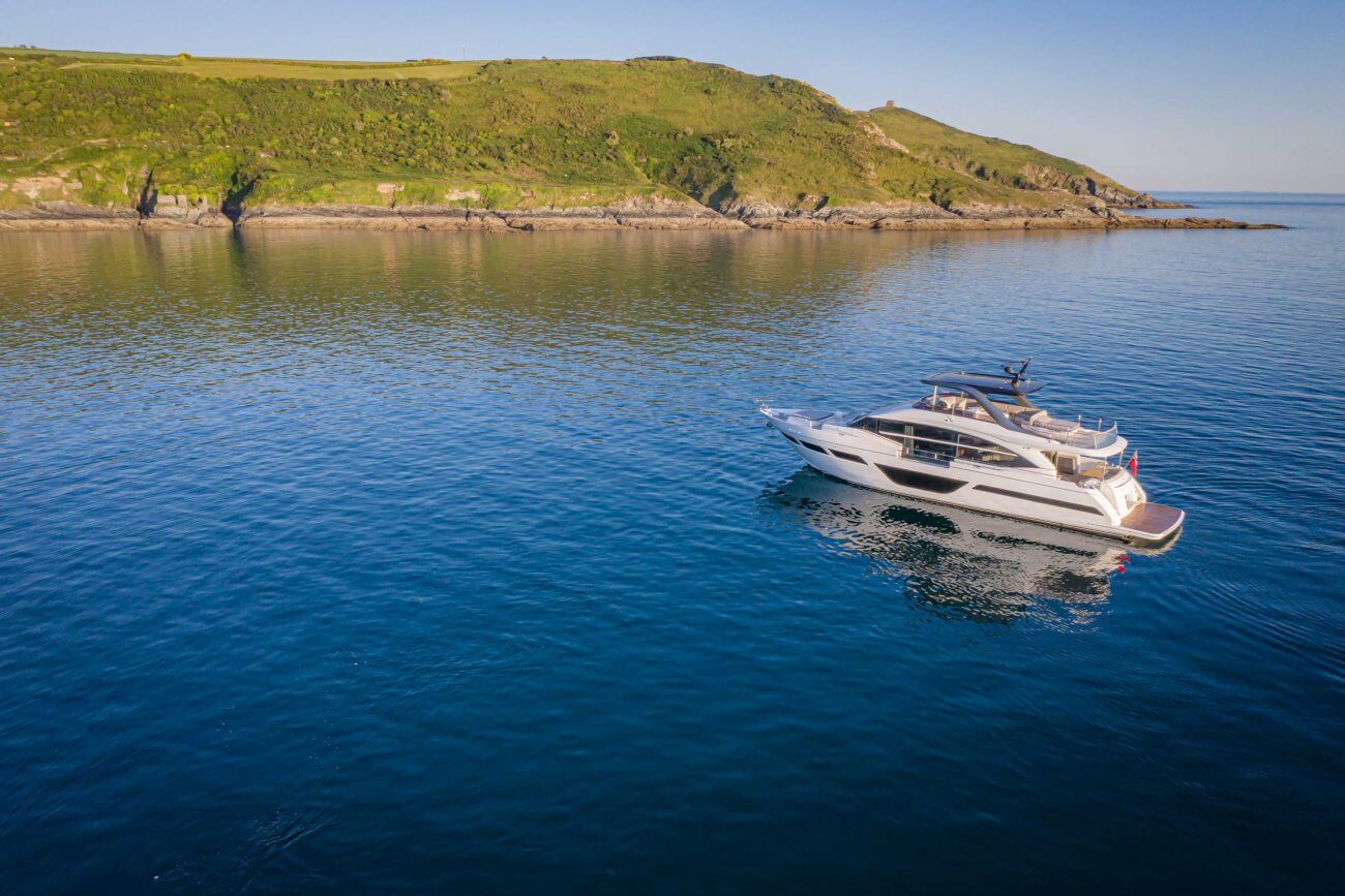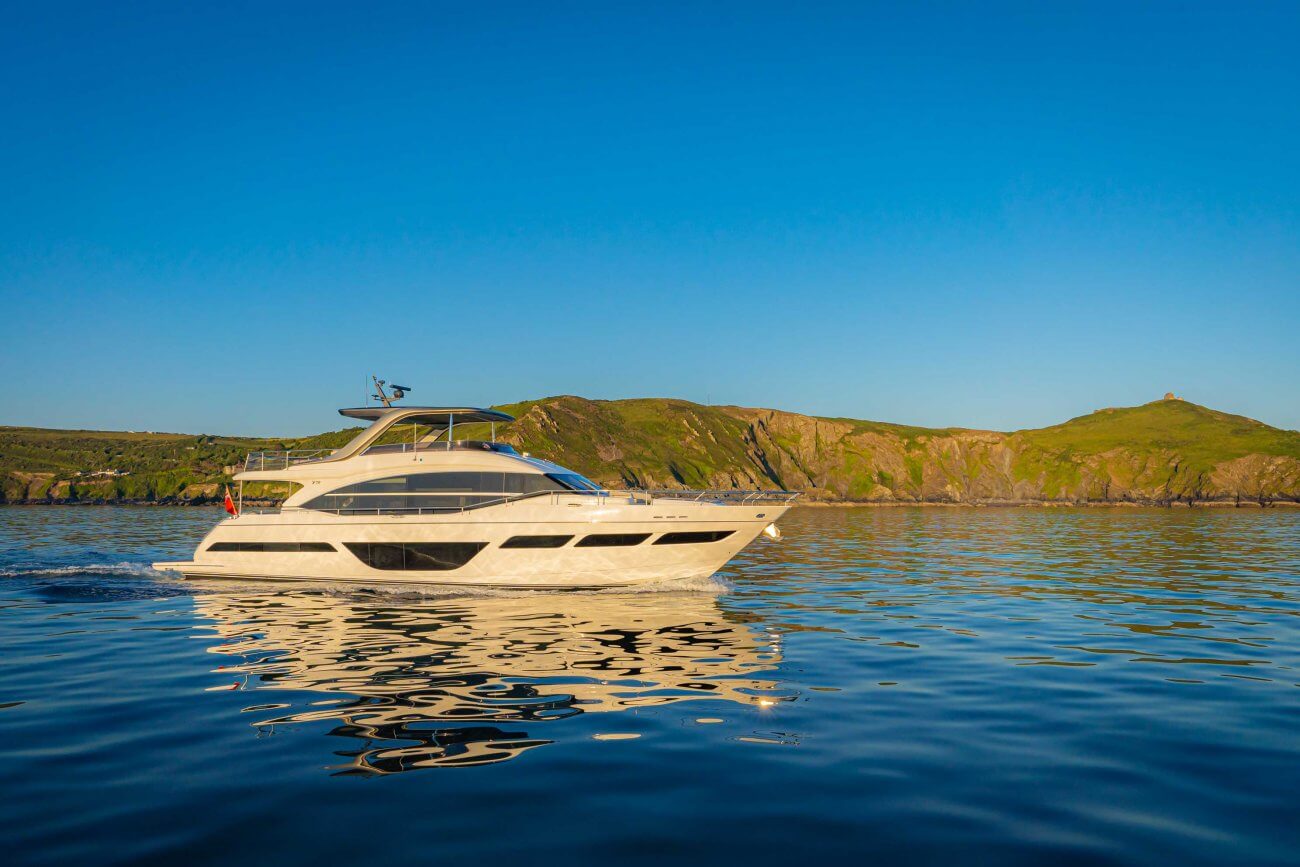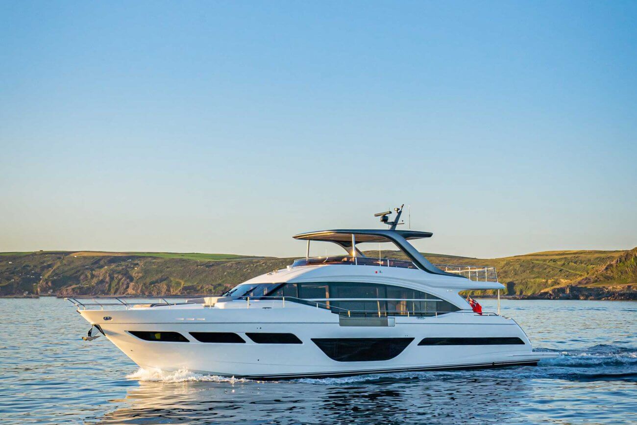 The new Y78 features the very latest in Princess exterior design and interior materials and finishes. Her flexible deck layout features a walkthrough foredeck with U-shaped seating and sunbathing area, whilst her flybridge aft has space for free standing furniture or can accommodate a crane and a tender. Natural light flows in to her main deck through extended window lines and a unique full-height window on the port side to make the free standing dining area a spectacular place to entertain. Forward on the lower deck, all three guest cabins are en suite whilst a dedicated staircase leads to the owner’s stateroom amidships via a private lobby area.