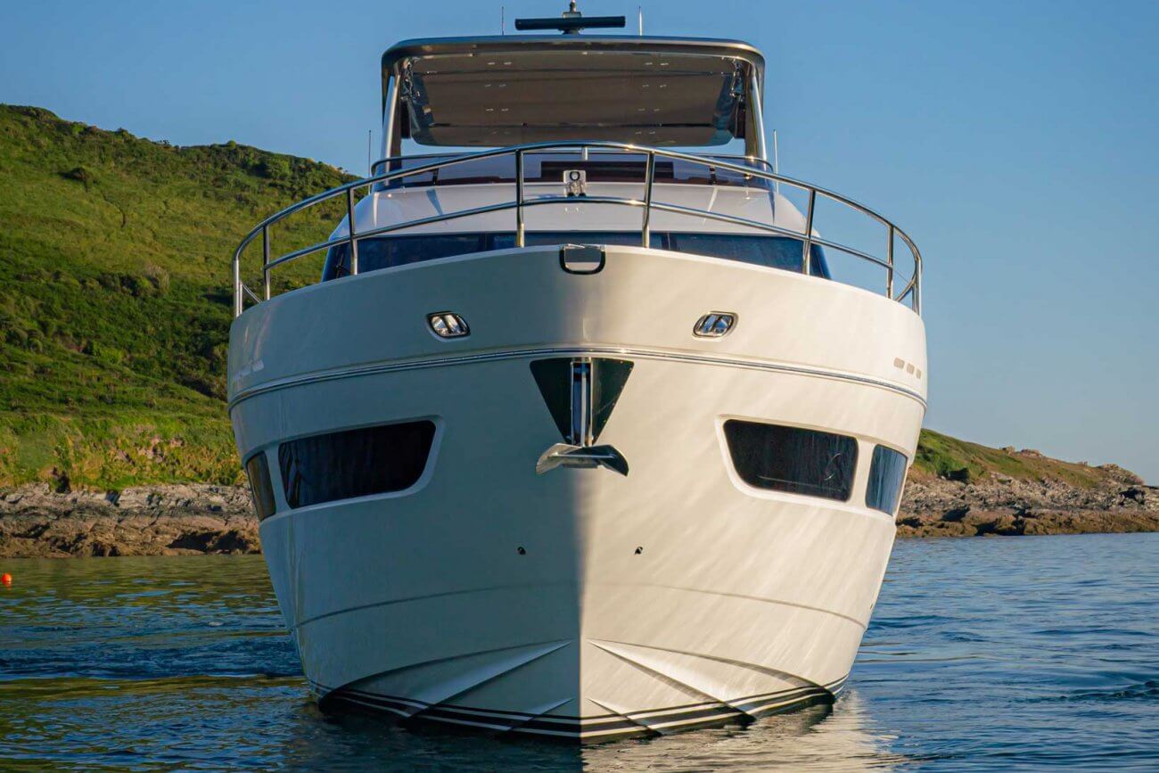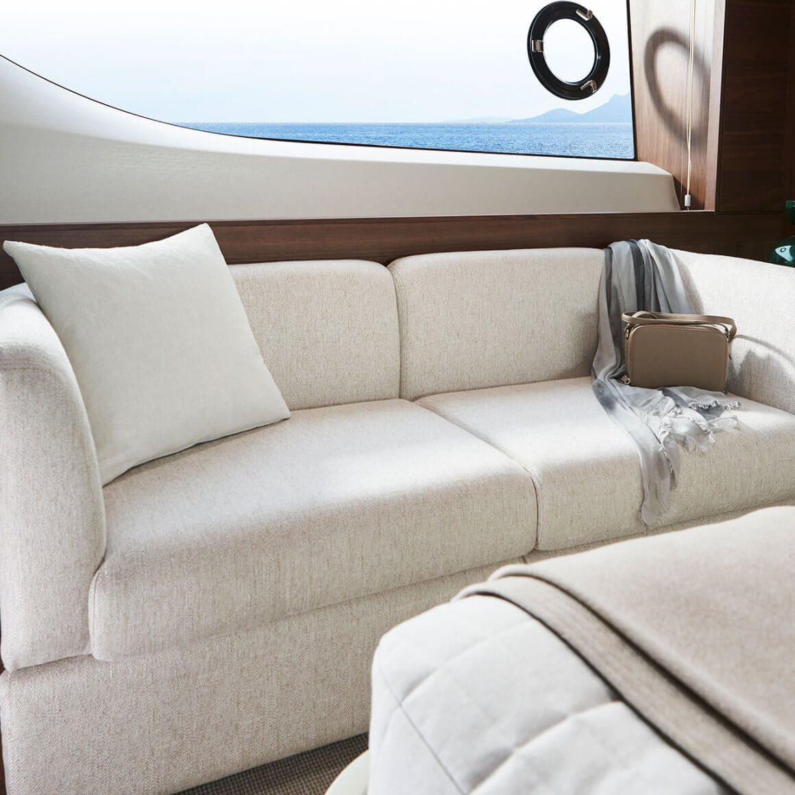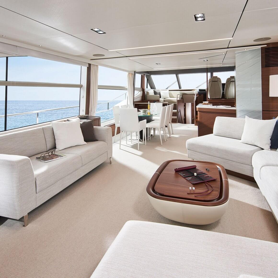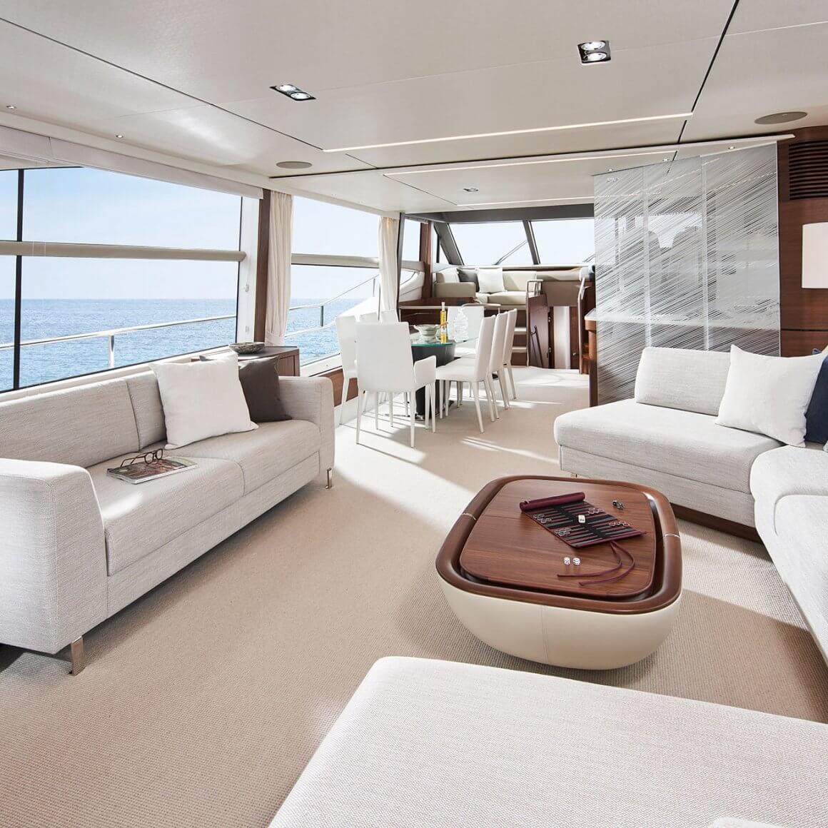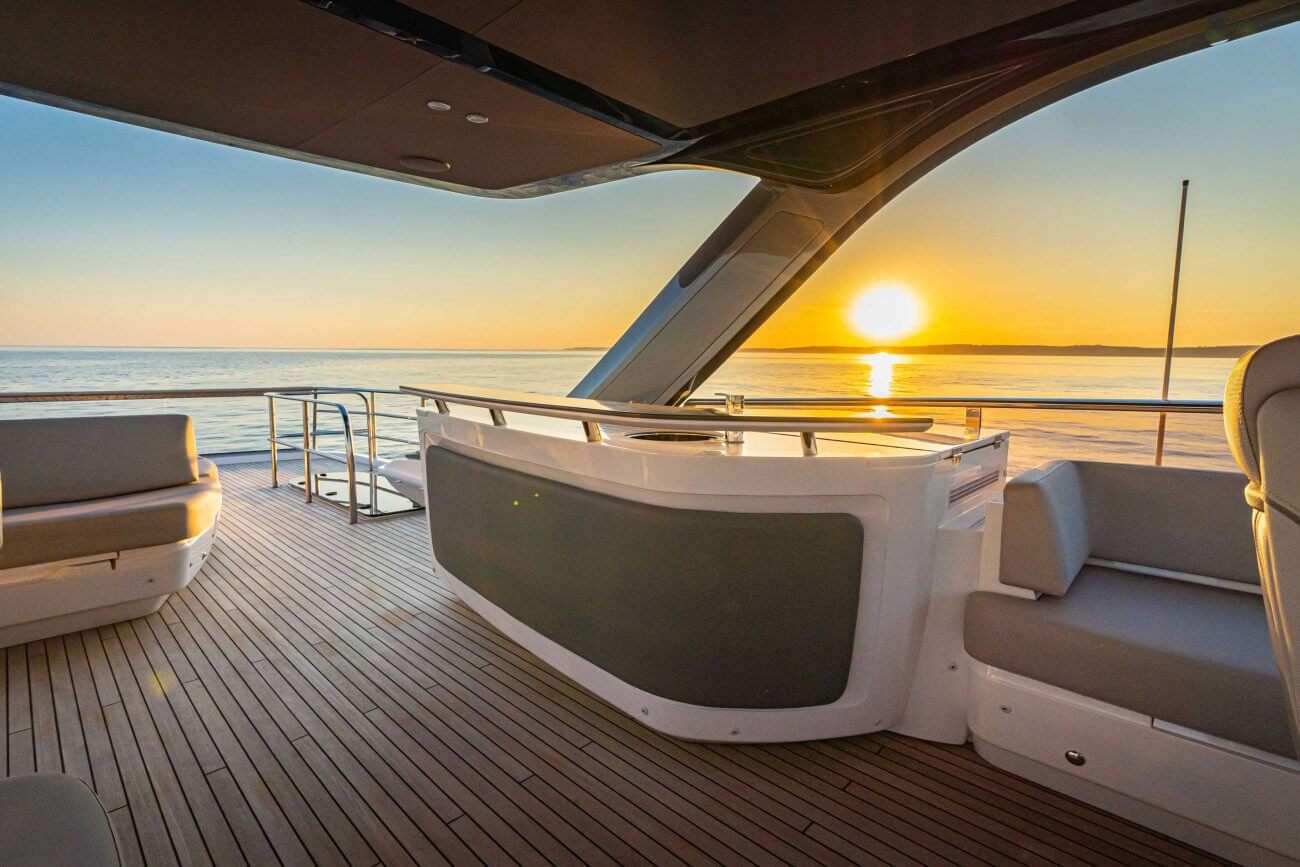 The new Y78 features the very latest in Princess exterior design and interior materials and finishes. Her flexible deck layout features a walkthrough foredeck with U-shaped seating and sunbathing area, whilst her flybridge aft has space for free standing furniture or can accommodate a crane and a tender. Natural light flows in to her main deck through extended window lines and a unique full-height window on the port side to make the free standing dining area a spectacular place to entertain. Forward on the lower deck, all three guest cabins are en suite whilst a dedicated staircase leads to the owner’s stateroom amidships via a private lobby area.