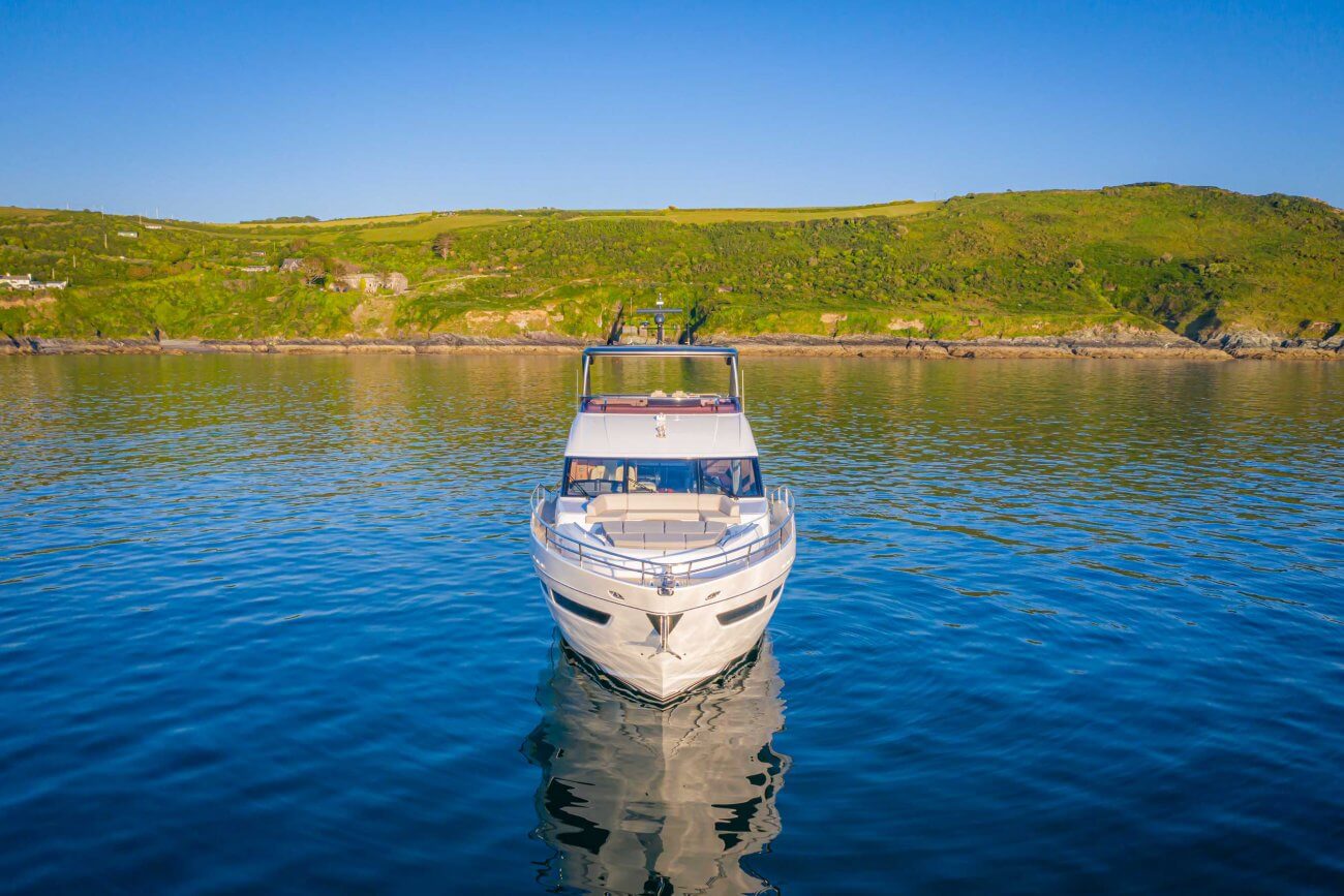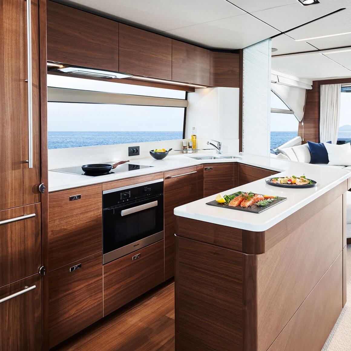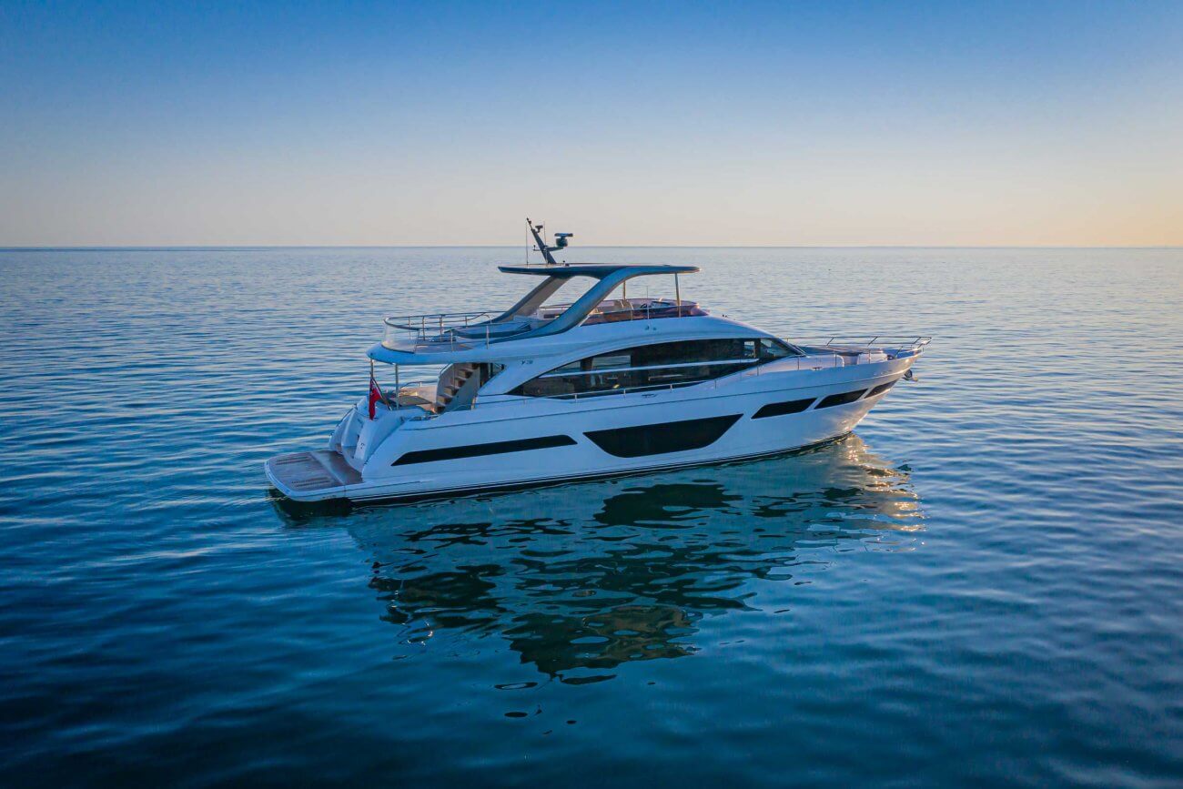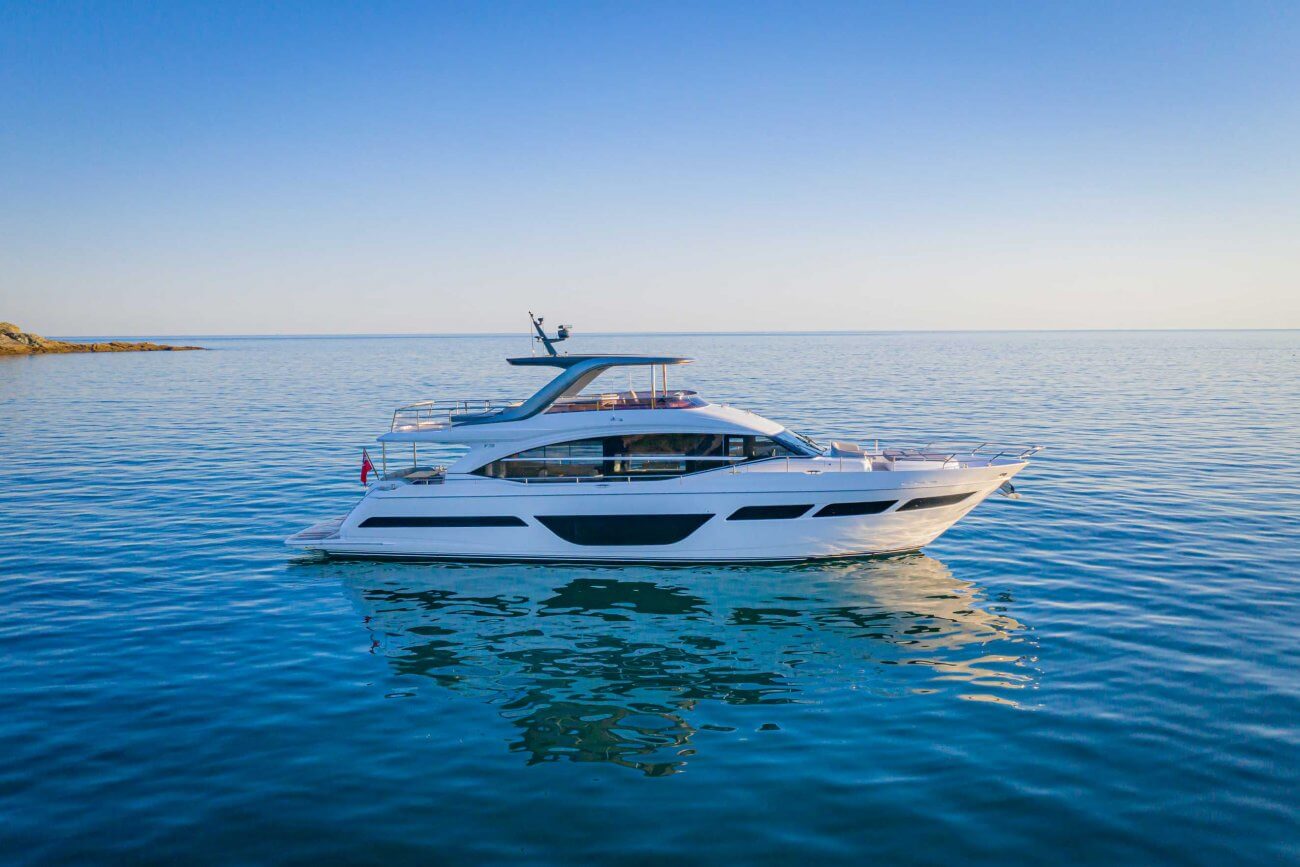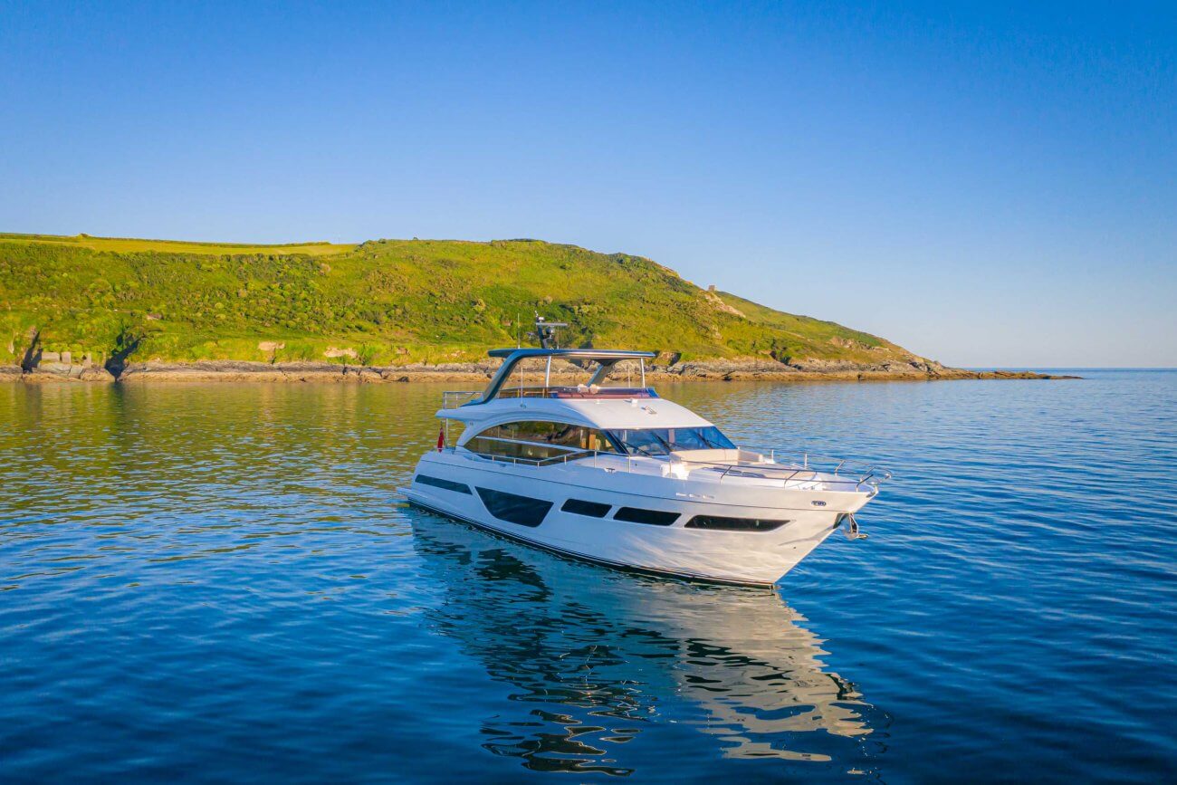 The new Y78 features the very latest in Princess exterior design and interior materials and finishes. Her flexible deck layout features a walkthrough foredeck with U-shaped seating and sunbathing area, whilst her flybridge aft has space for free standing furniture or can accommodate a crane and a tender. Natural light flows in to her main deck through extended window lines and a unique full-height window on the port side to make the free standing dining area a spectacular place to entertain. Forward on the lower deck, all three guest cabins are en suite whilst a dedicated staircase leads to the owner’s stateroom amidships via a private lobby area.