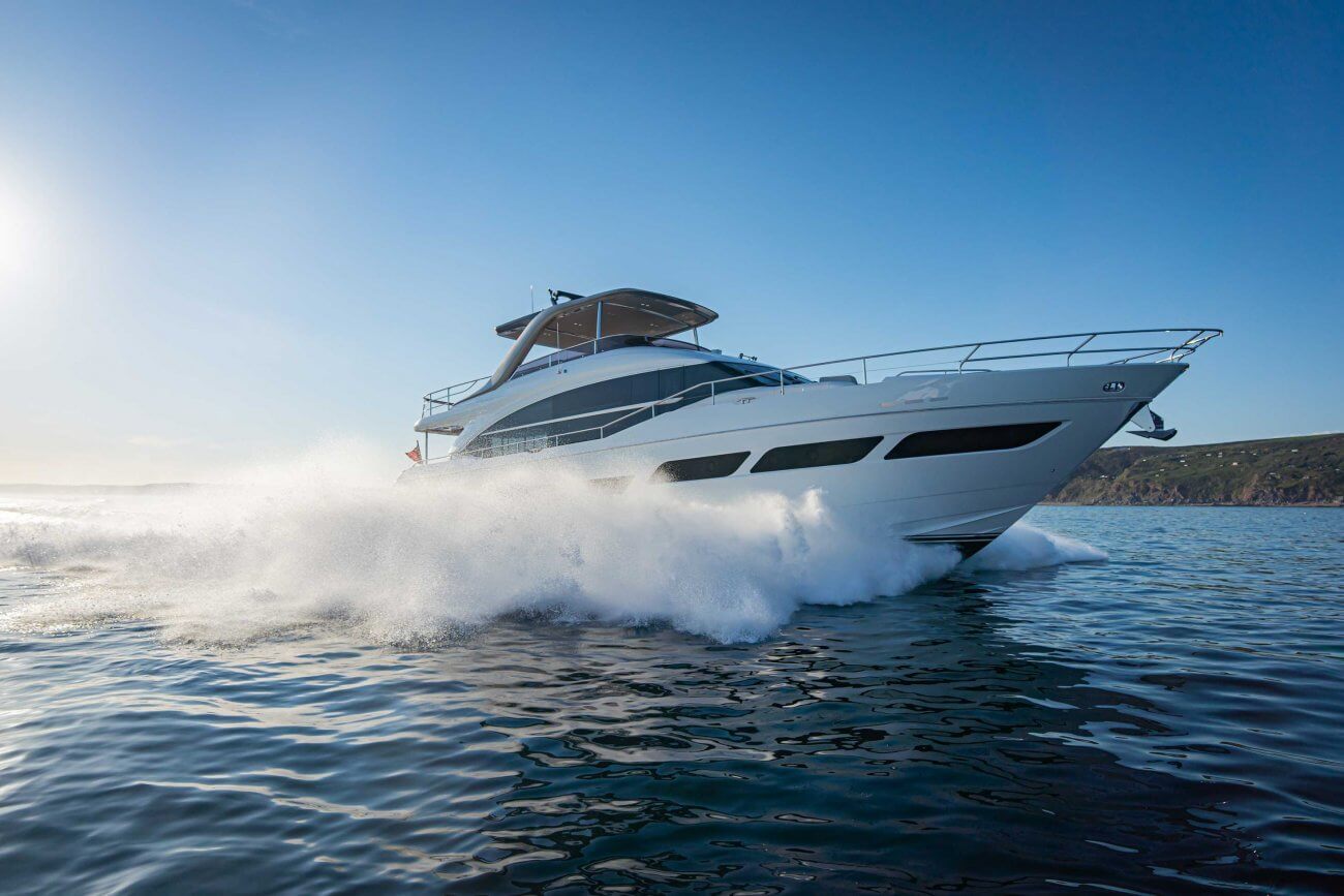 † Maximum speeds will vary depending on cleanliness of hull, condition of sterngear, loading of craft, water and air temperatures, sea conditions and other factors. Speed estimates are therefore given in good faith but without warranty or liability on the part of us or Princess Yachts International plc.