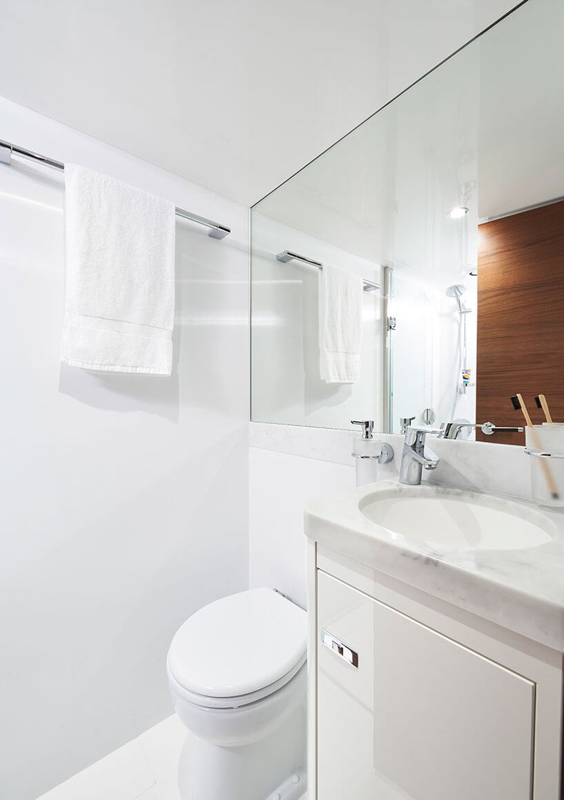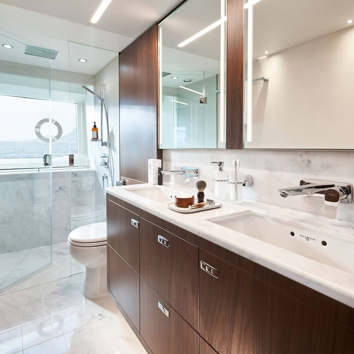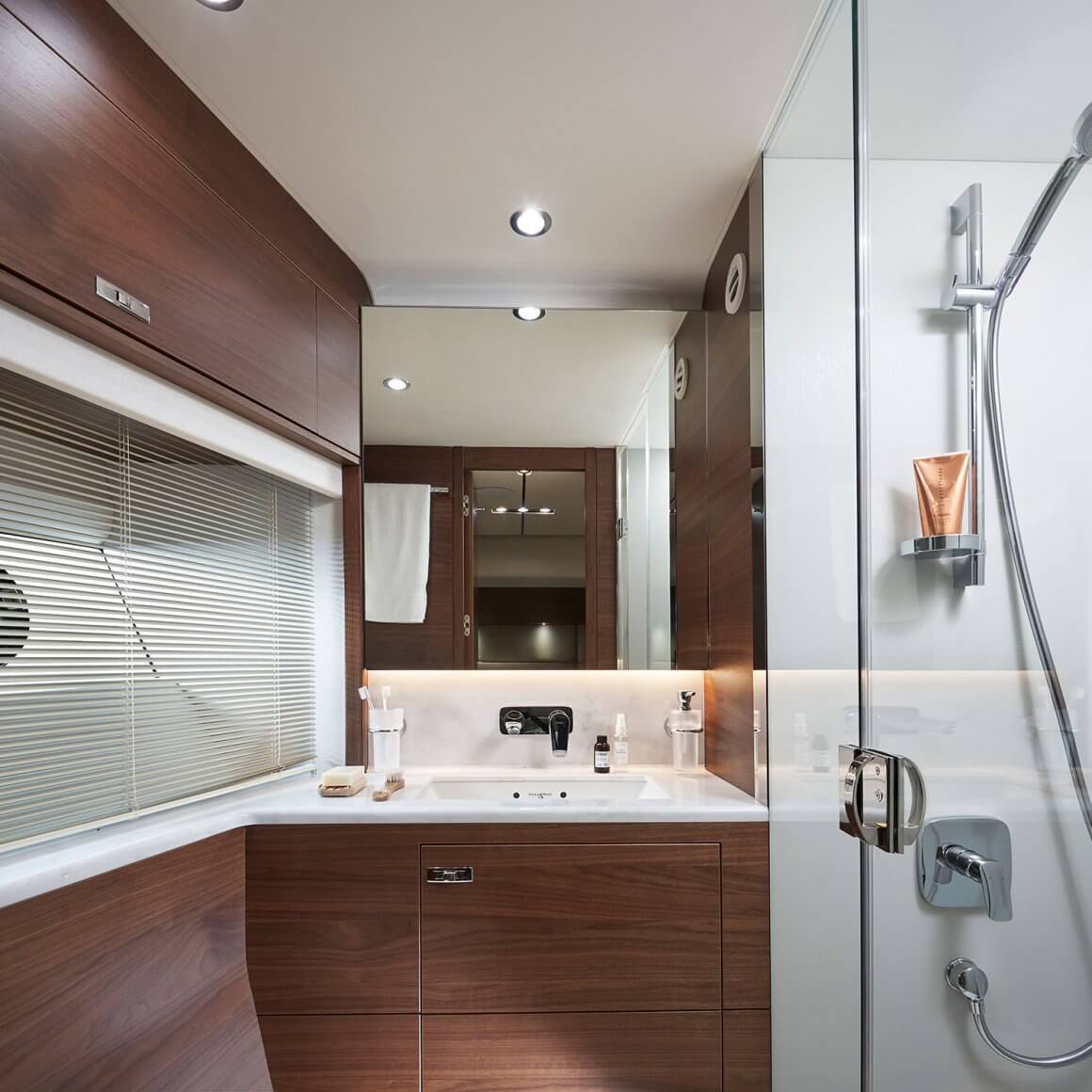 • Bathroom with separate stall shower, electric freshwater toilet and washbasin