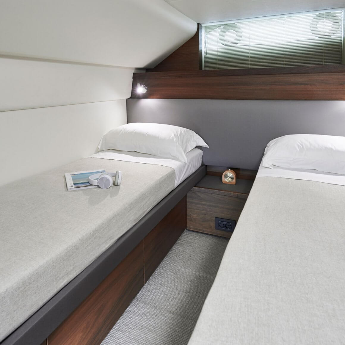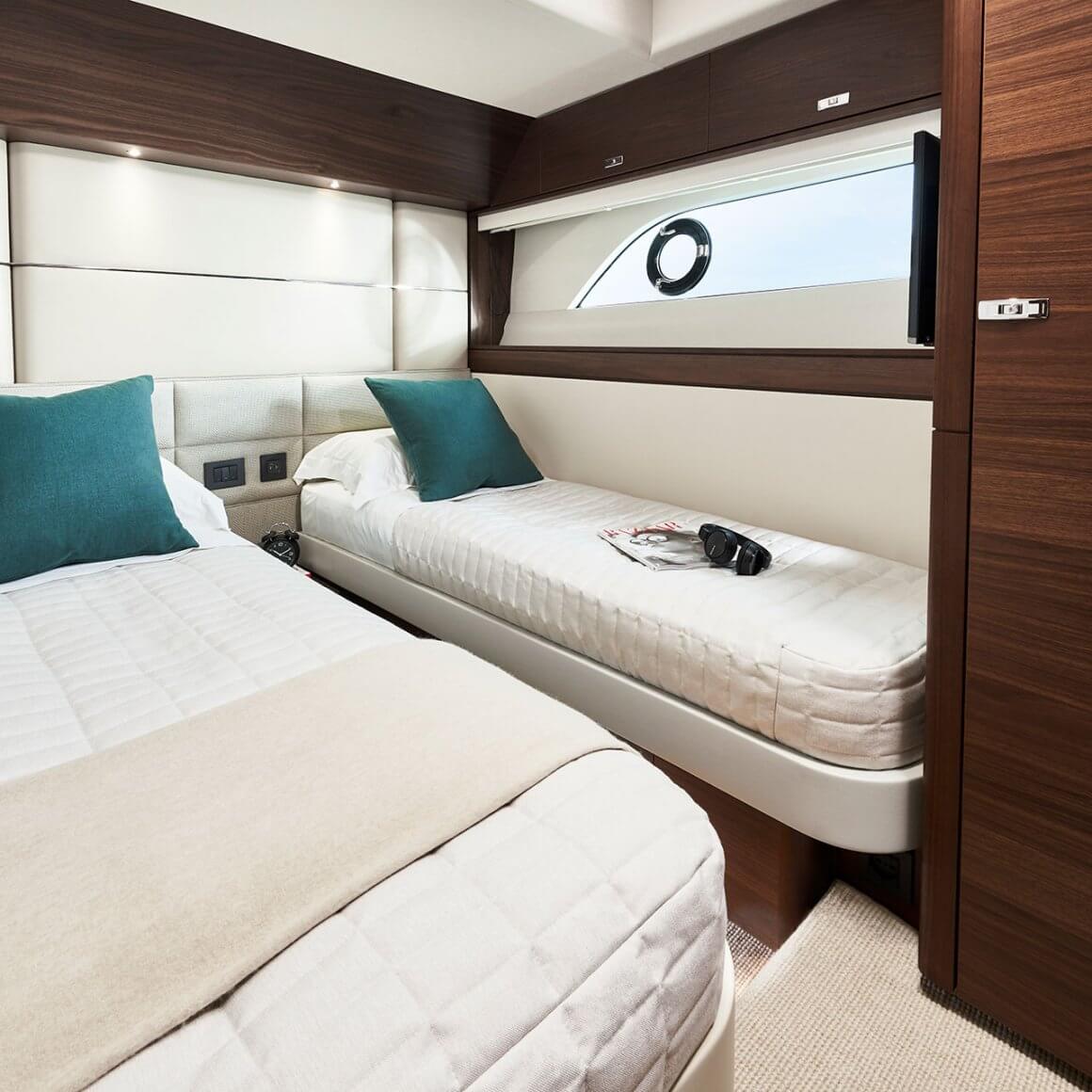 • Two single beds with drawers below (with the option of powered conversion to double)