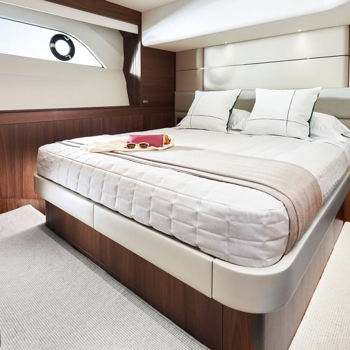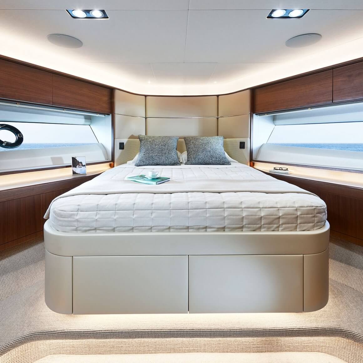 • Large double bed with drawers below (with the option of powered sliding berths)