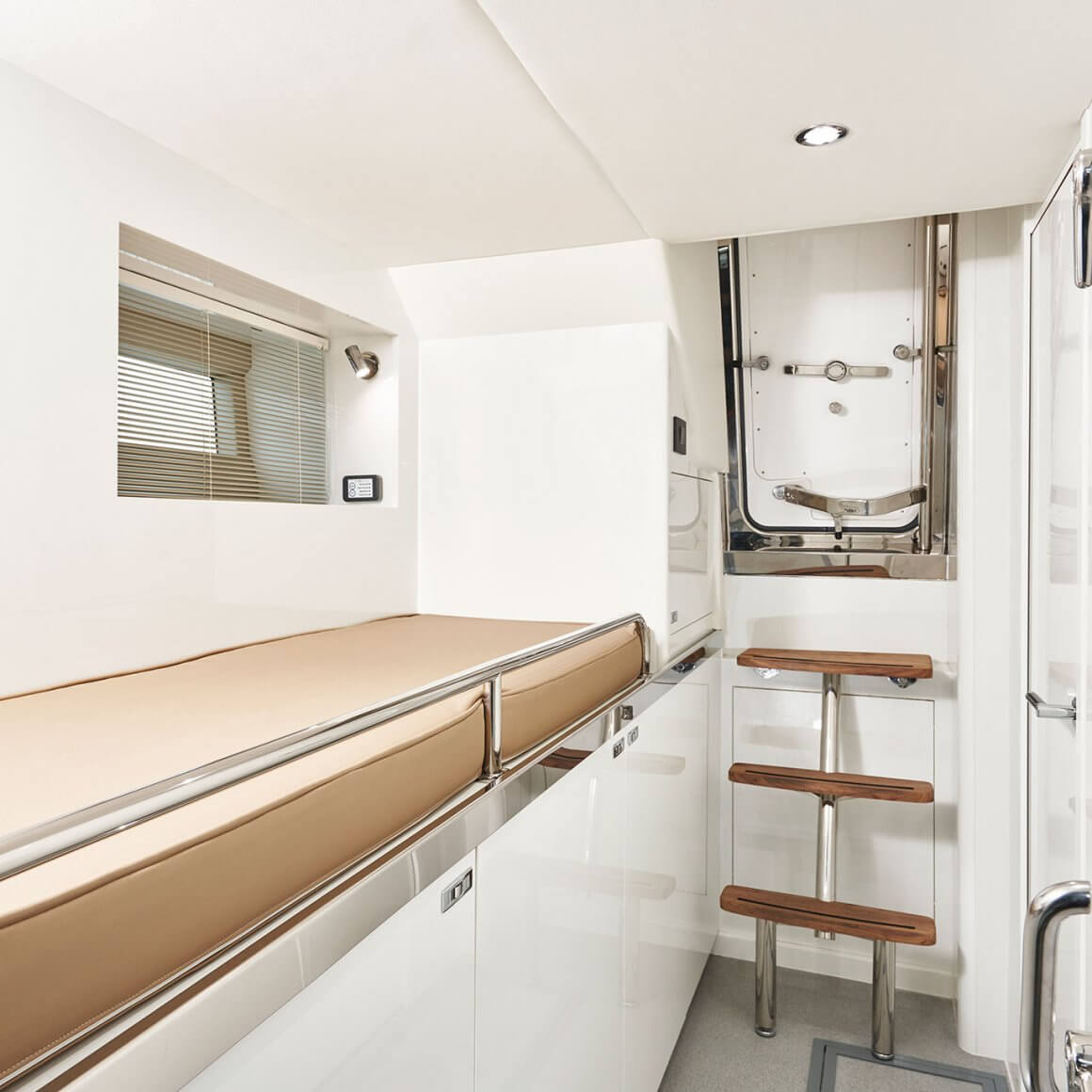 • Crew cabin with two single berths, wardrobe and storage lockers