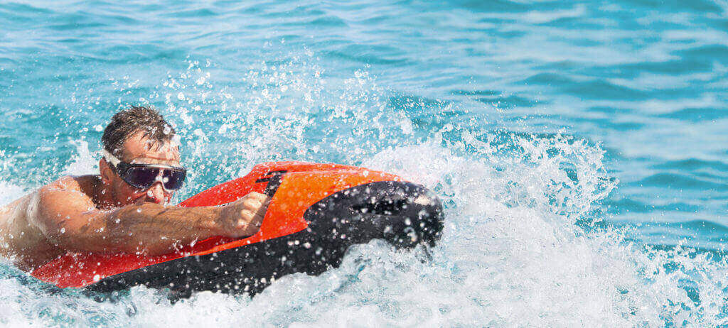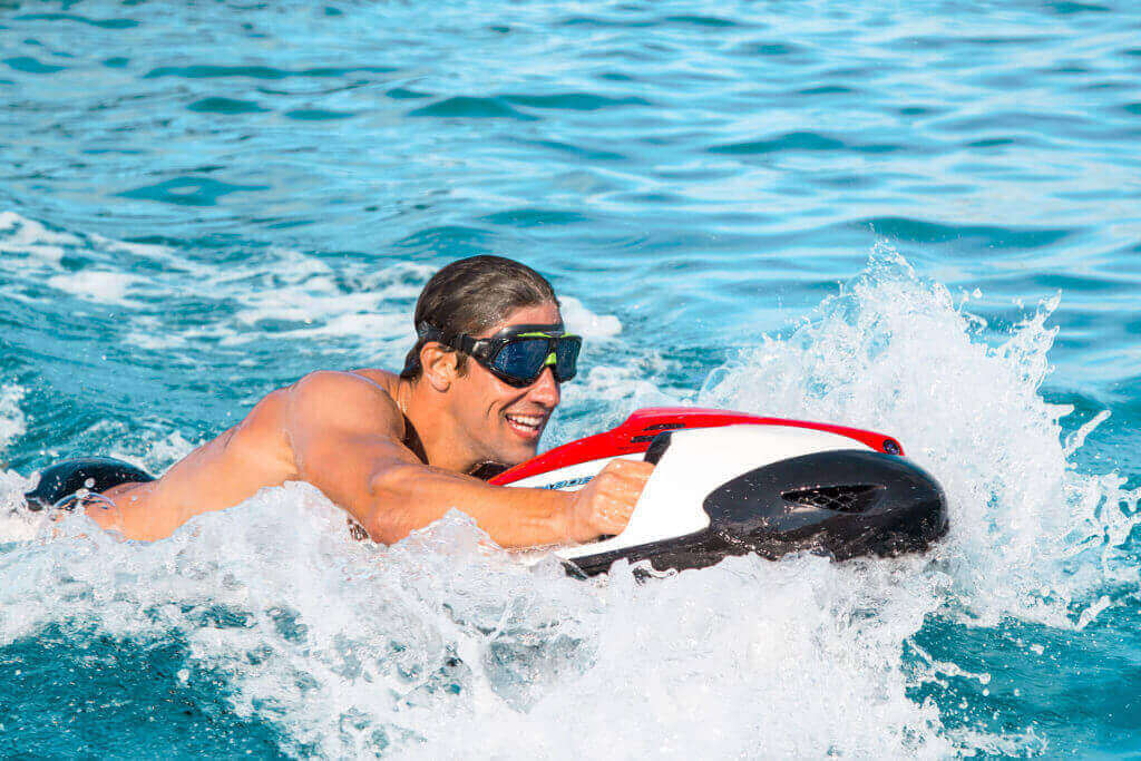 A SEABOB offers all-round high-performance. Its hydrodynamic shape provides for an astounding degree of agility in the water. Steering and diving could not be easier – all it requires is for the pilot to shift his bodyweight.