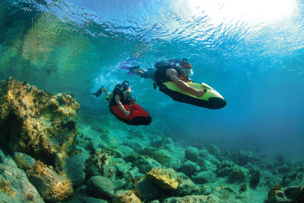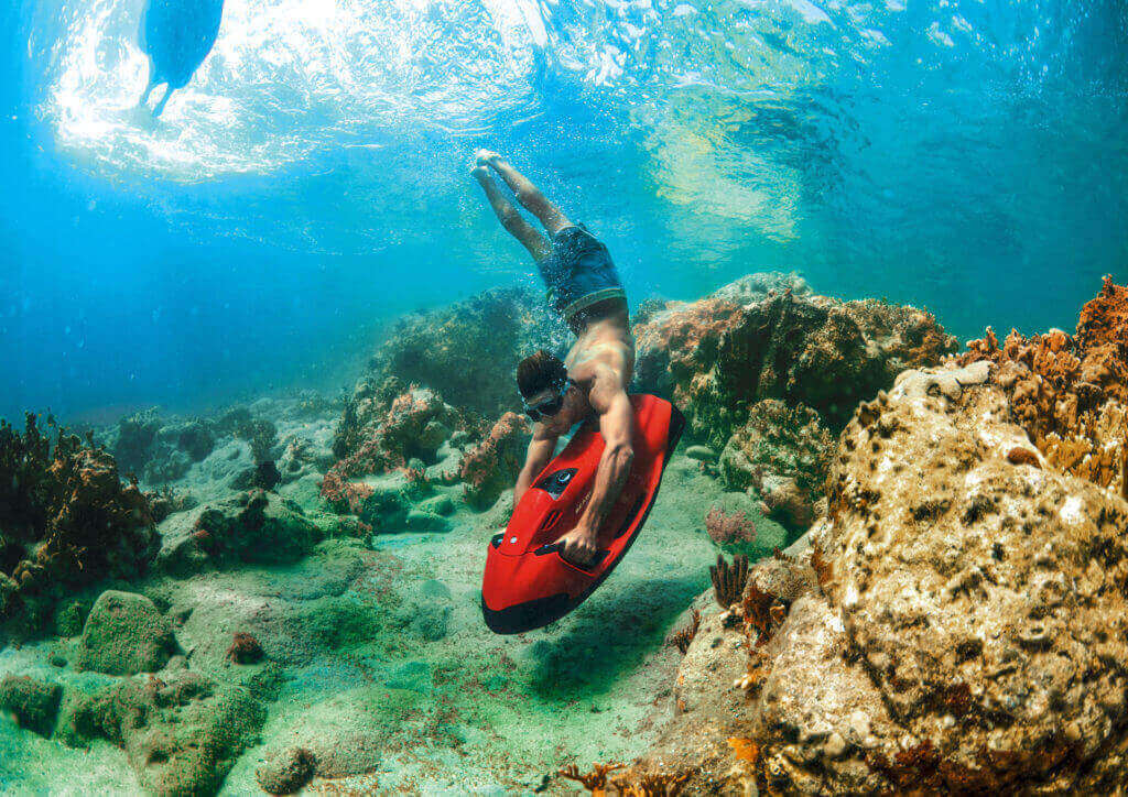 Whether you are cruising, zipping through the water or diving. The SEABOB will glide along powerfully with you aboard. Feel the awe-inspiring manoeuvrability. The new-found desire for water will never relinquish its hold on you again.