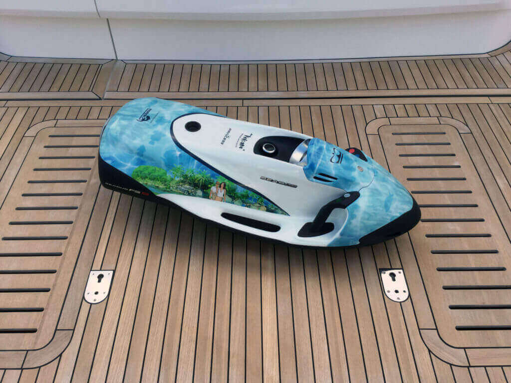 The outstanding properties of the SEABOB F5 in terms of handling make it suitable for use in any water surroundings. It is at home in the sea. It demonstrates outstanding performance on the water surface and when diving. Owing to its high degree of manoeuvrability, the SEABOB F5 can be used in both small and large pool complexes.